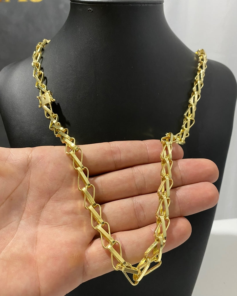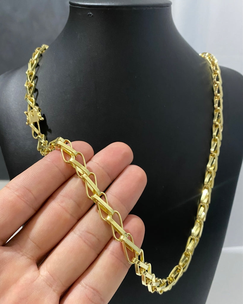 Nossas peças são feitas 100% de moeda antiga maciça, um material muito semelhante ao ouro 18K. Não mareia, não descasca, não enferruja e não perde a cor.