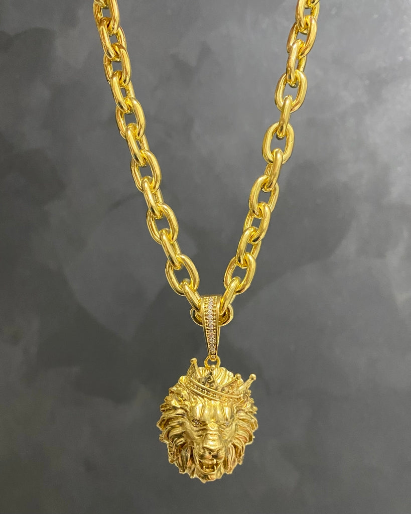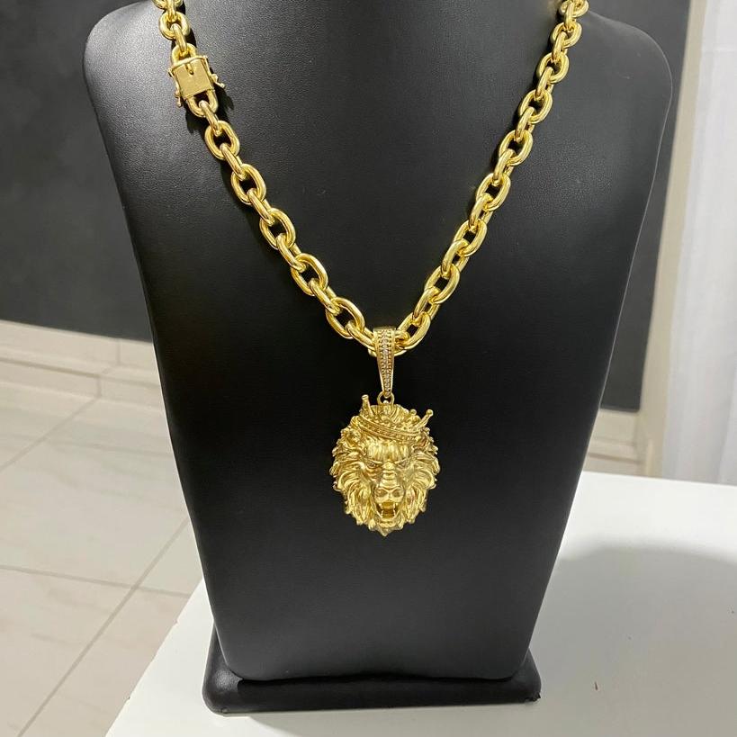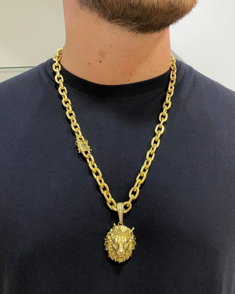 CORRENTE CADEADO 12MM + PINGENTE LEÃO CRAVEJADO