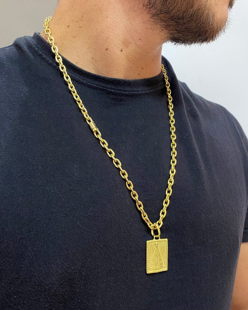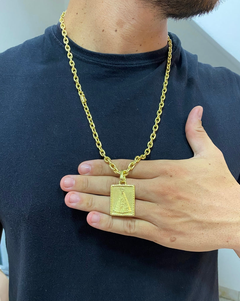CORRENTE CADEADO 6MM + PINGENTE NOSSA SENHORA APARECIDA QUADRADO