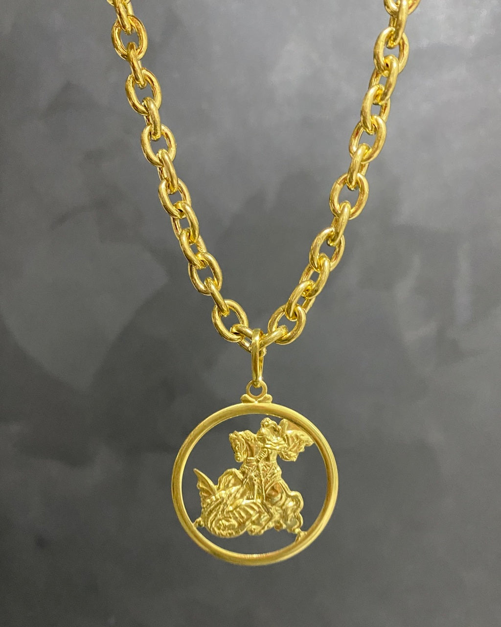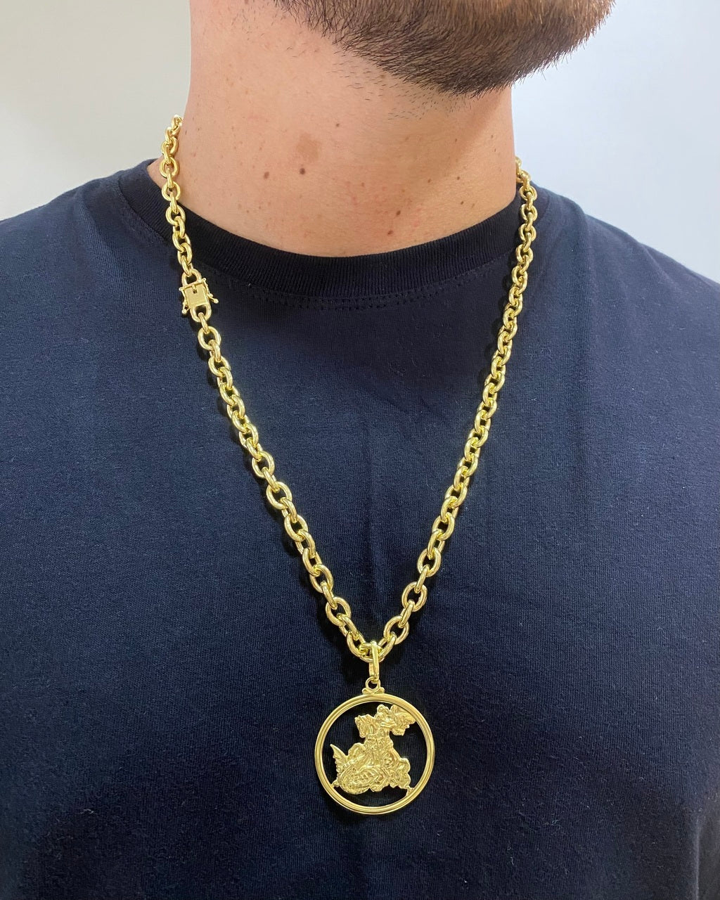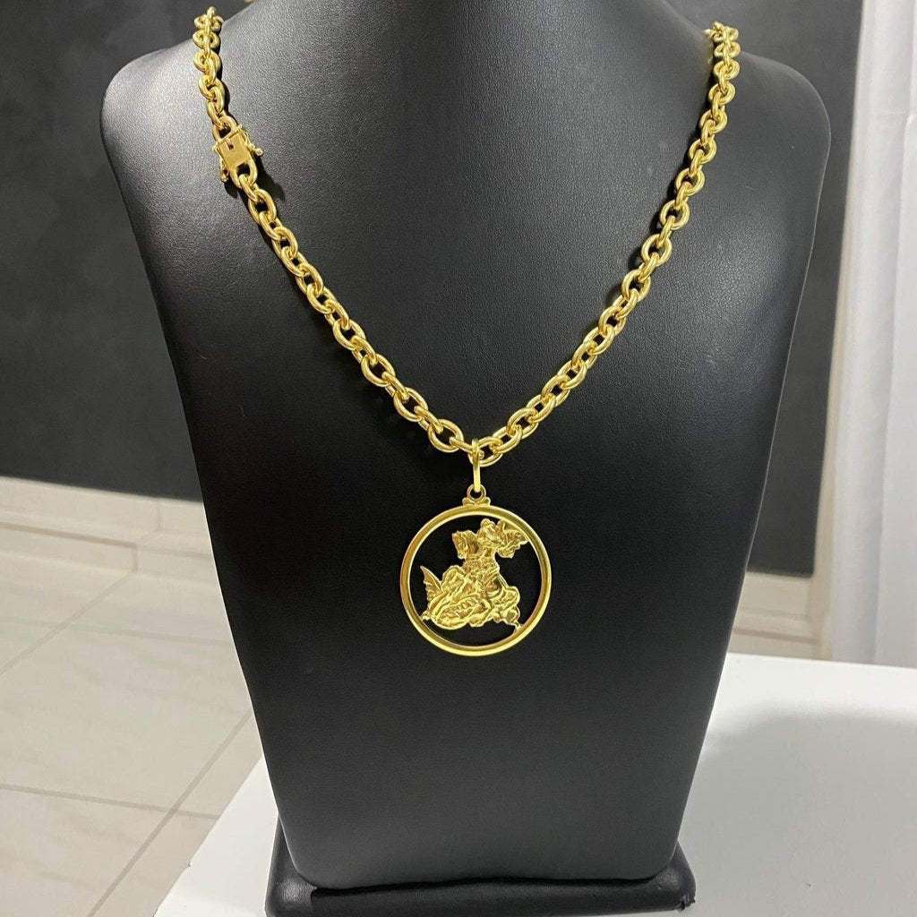 CORRENTE CADEADO 8MM + PINGENTE SÃO JORGE VAZADO COM ARO