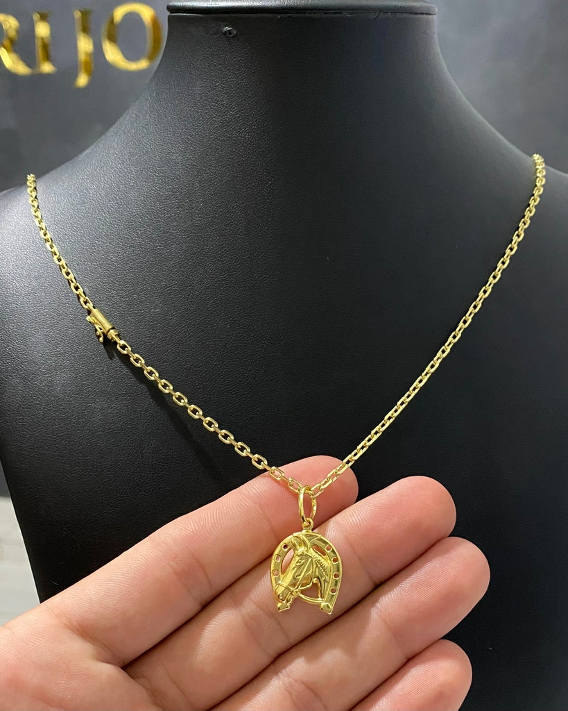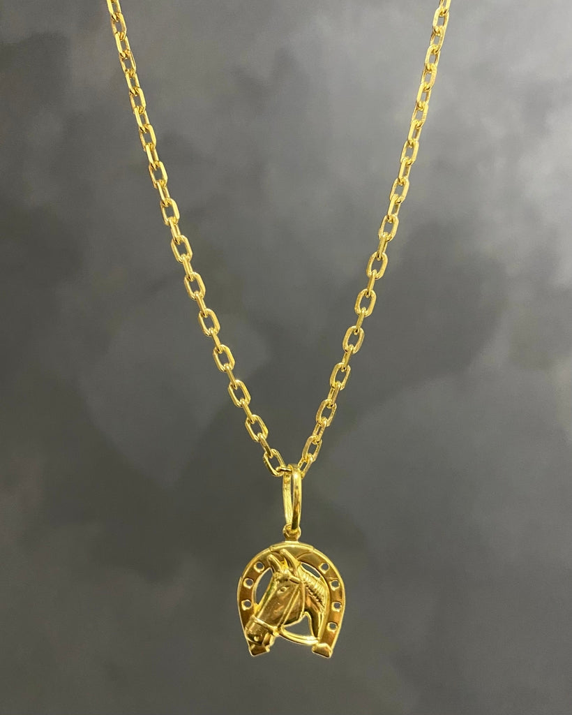 CORRENTE CADEADO DE QUINA 2MM + PINGENTE FERRADURA DO CAVALO PEQUENO