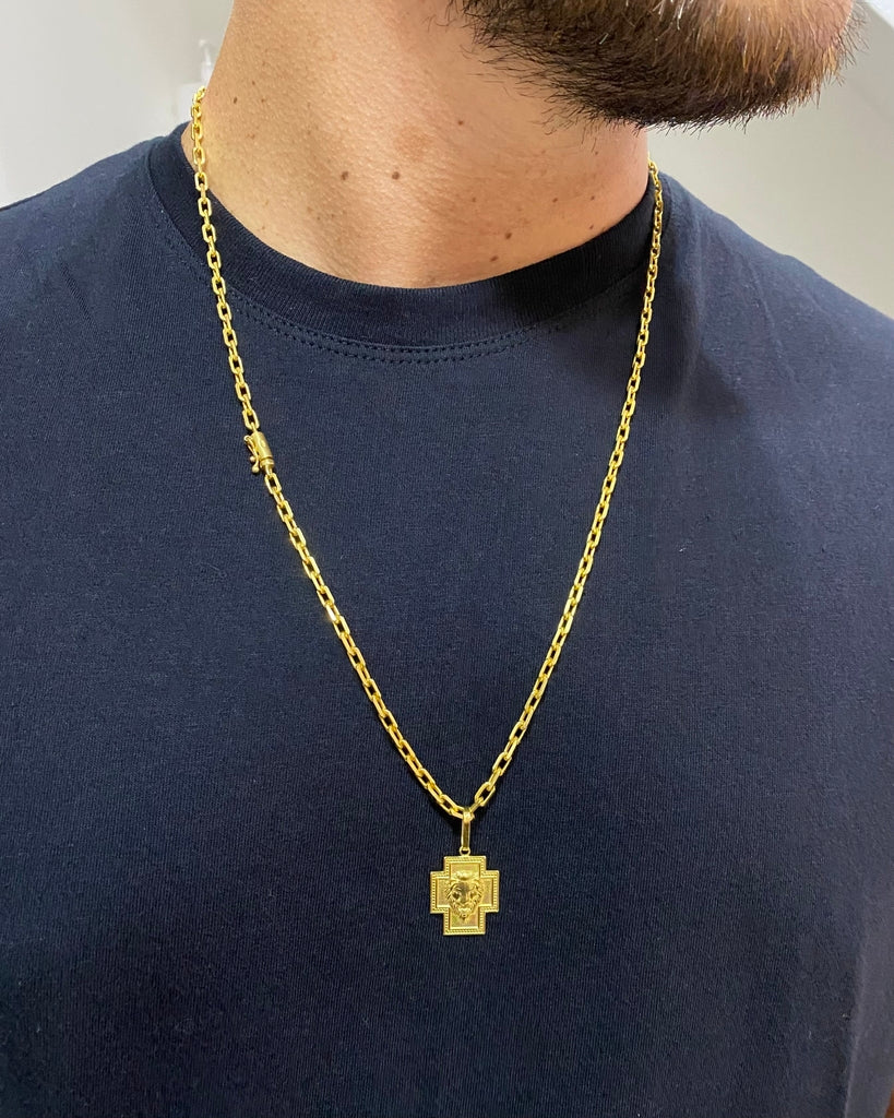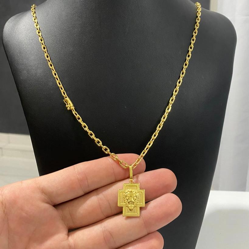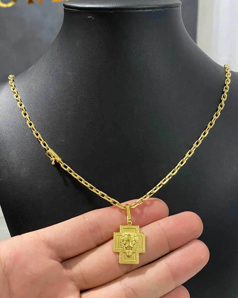 CORRENTE CADEADO DE QUINA 4MM + PINGENTE CRUZ LEÃO