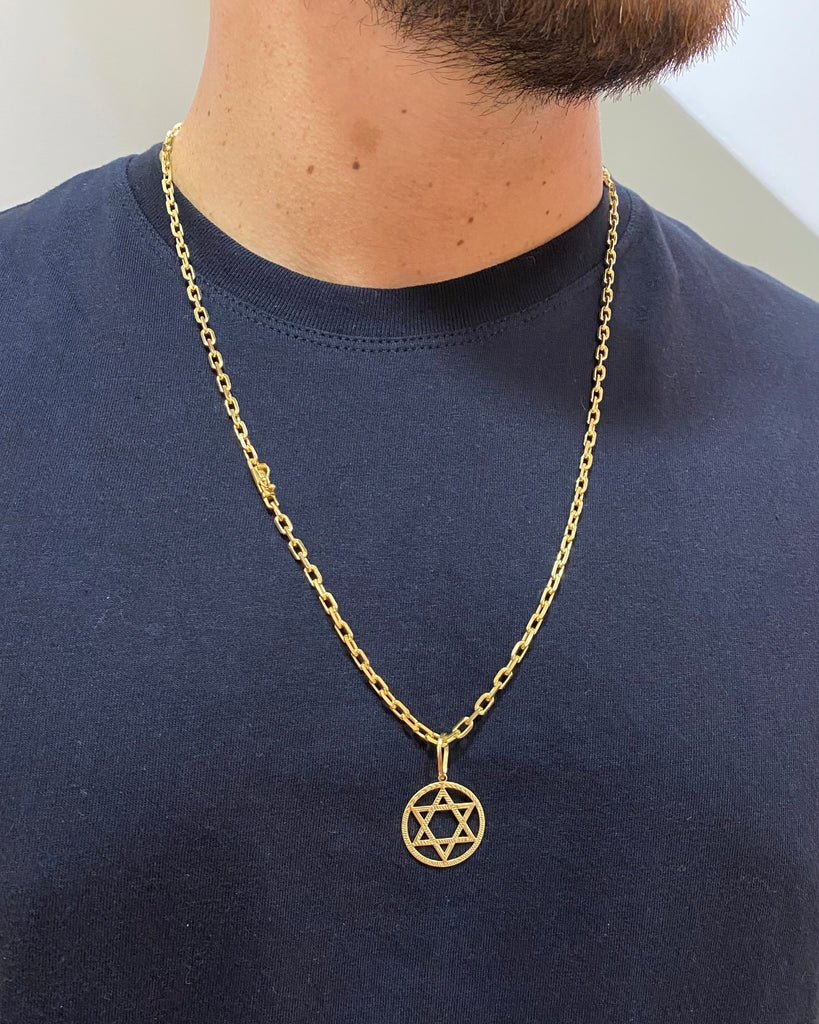CORRENTE CADEADO DE QUINA 4MM + PINGENTE ESTRELA DE DAVI VAZADO