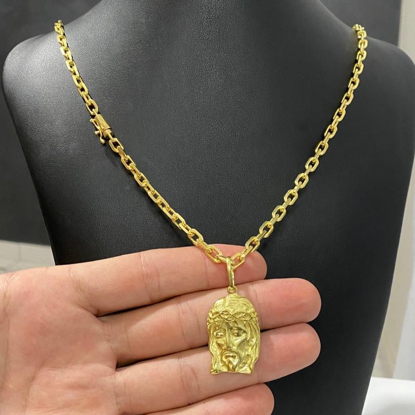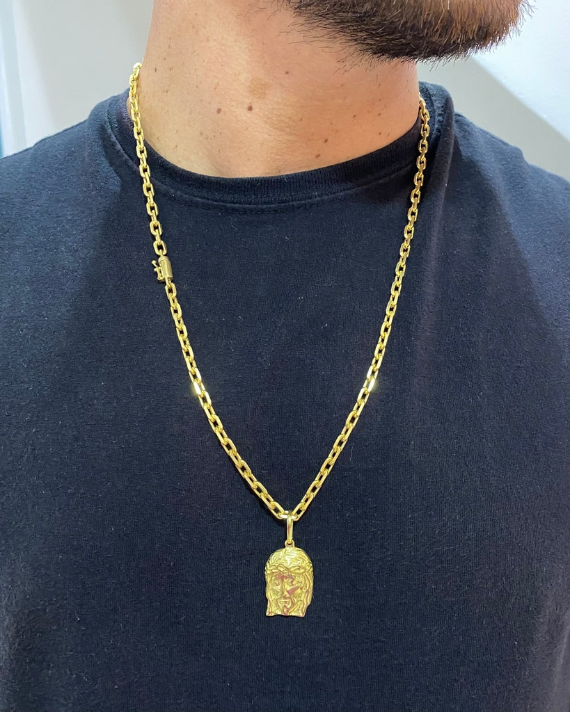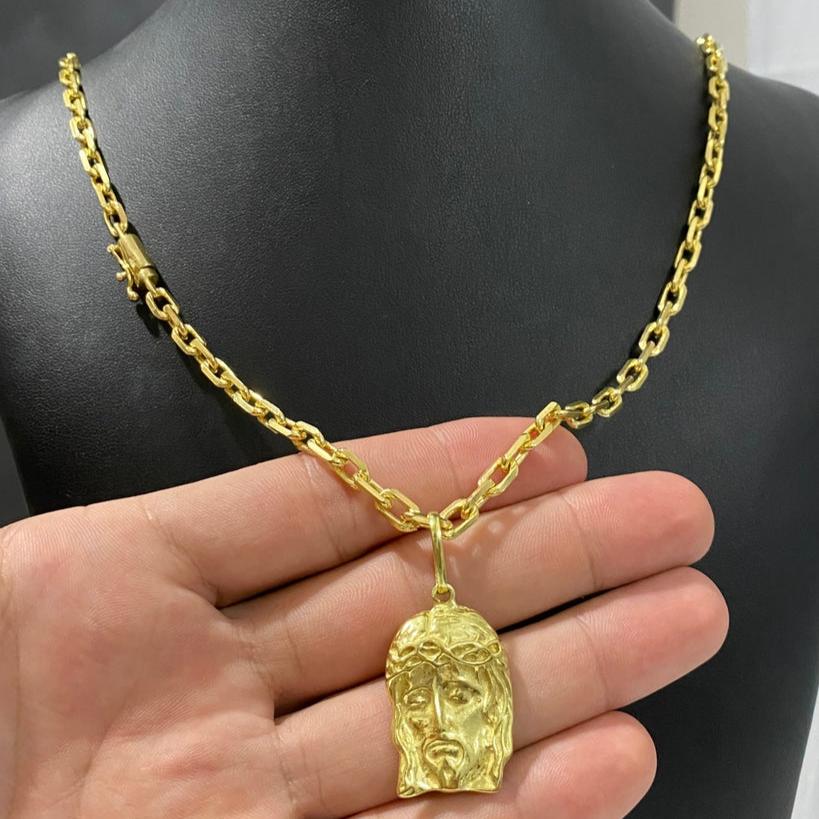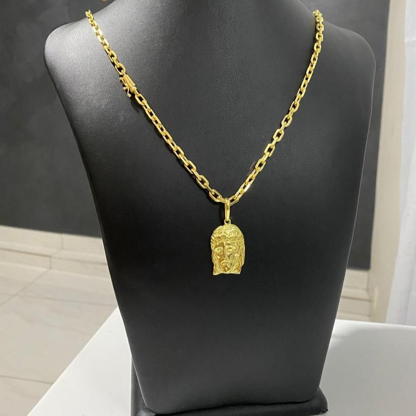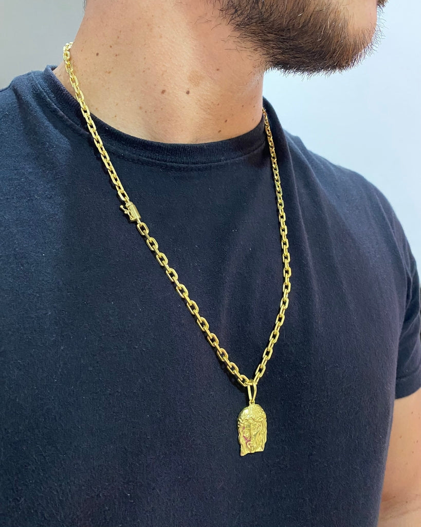 CORRENTE CADEADO DE QUINA 5MM + PINGENTE ROSTO DE CRISTO PADRÃO