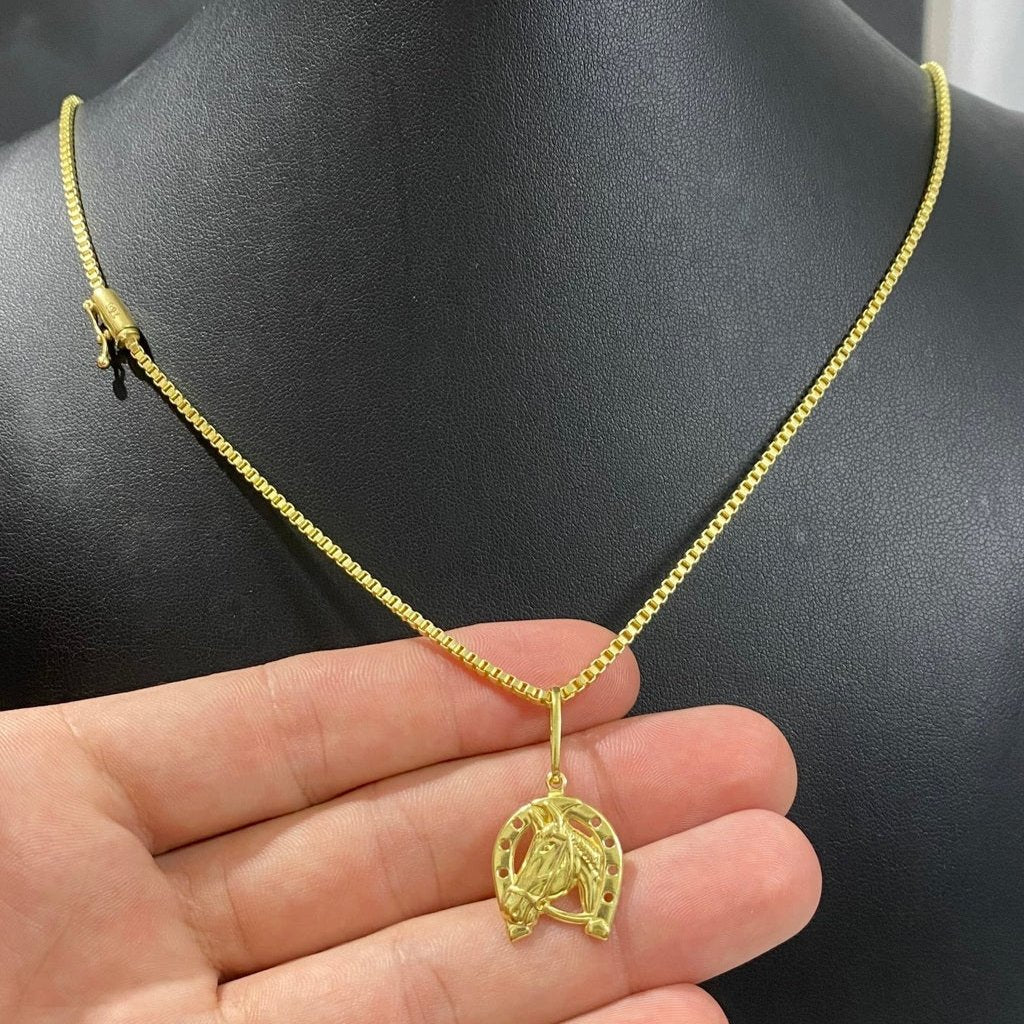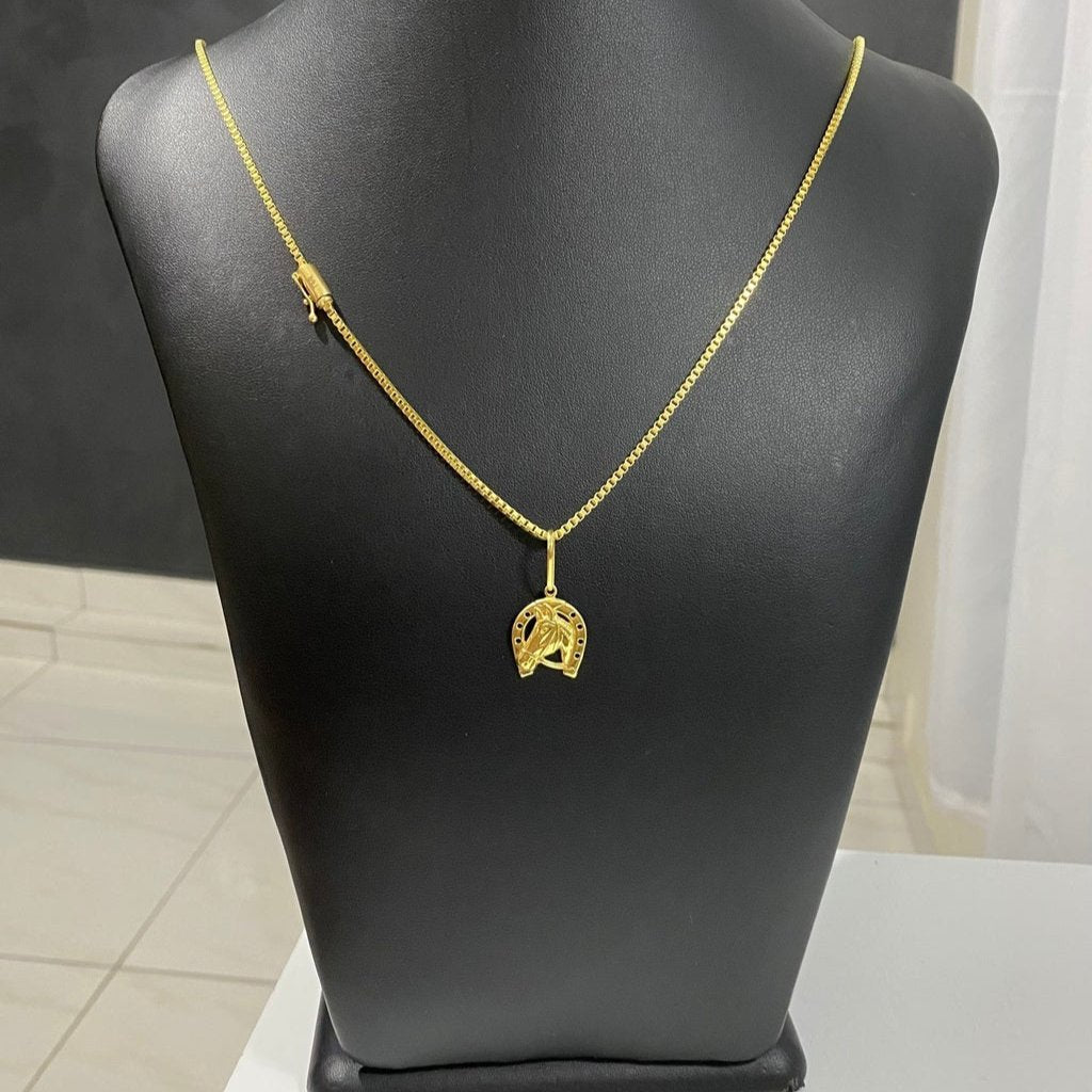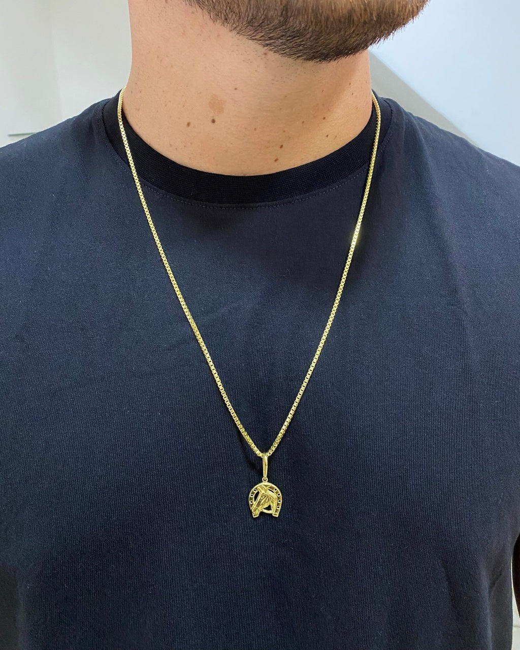 CORRENTE CUBINHO 2MM + PINGENTE FERRADURA DO CAVALO PEQUENO