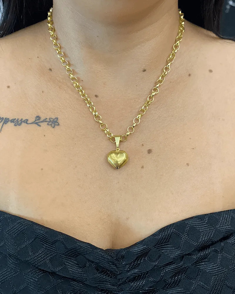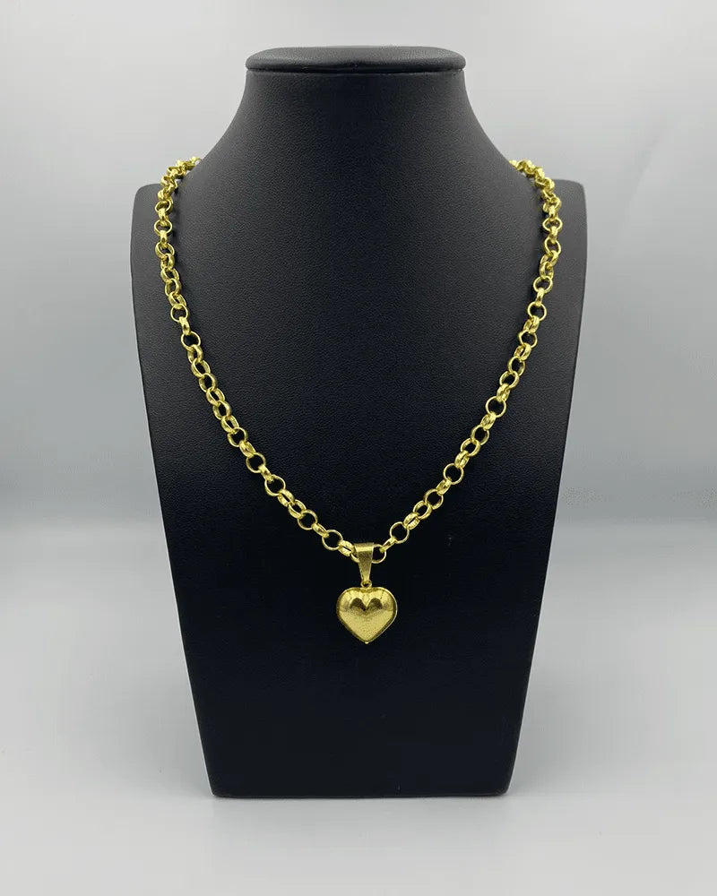 CORRENTE ELO PORTUGUÊS 4MM (45cm) + PINGENTE CORAÇÃO BOLEADO P