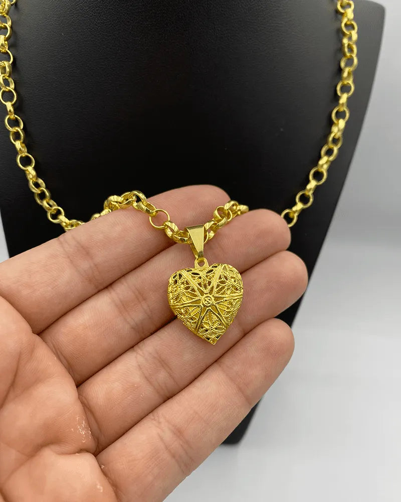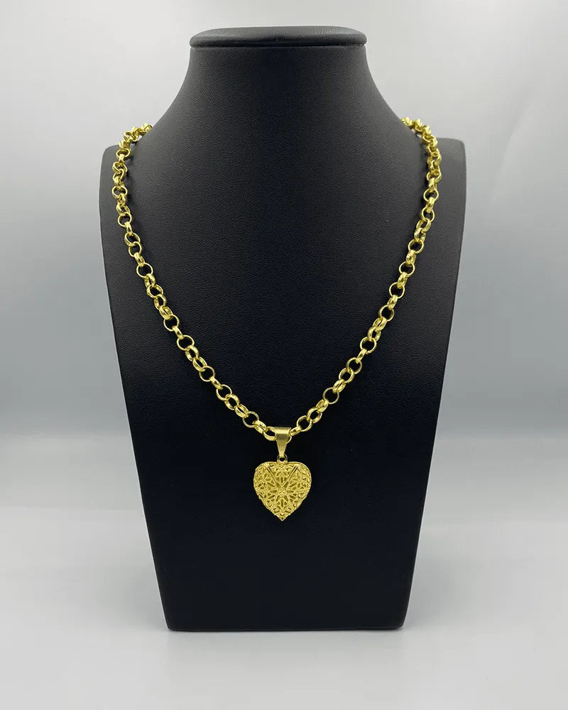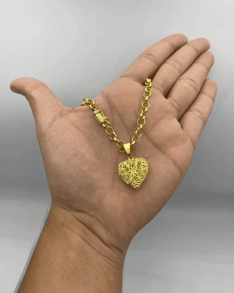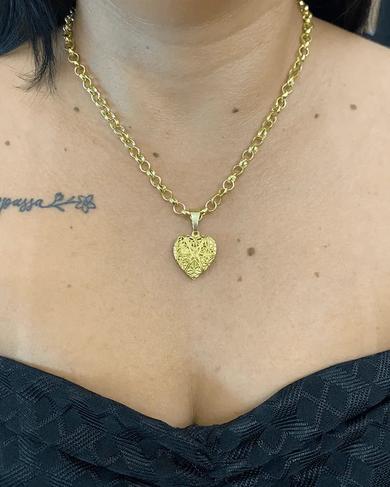 CORRENTE ELO PORTUGUÊS 4MM (45cm) + PINGENTE CORAÇÃO RELICÁRIO P