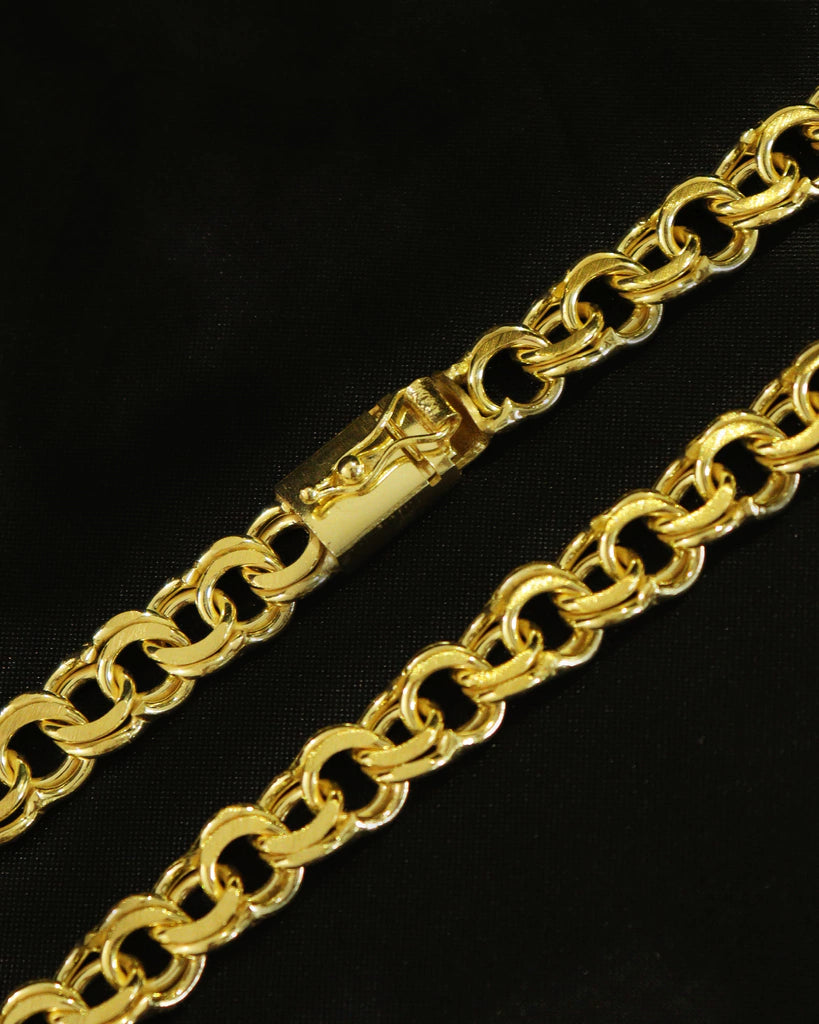 Nossas peças são feitas em moeda antiga, um material muito semelhante ao ouro 18k, que não descasca, não enferruja e não perde a cor.