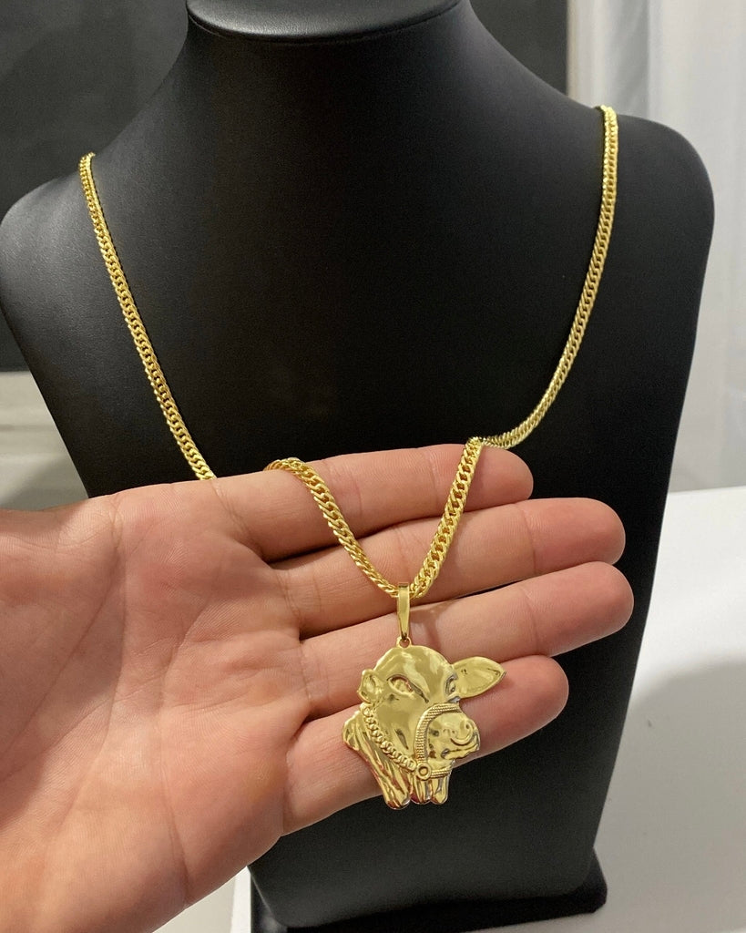 CORRENTE GRUMET 4MM + PINGENTE FACE DO BOI