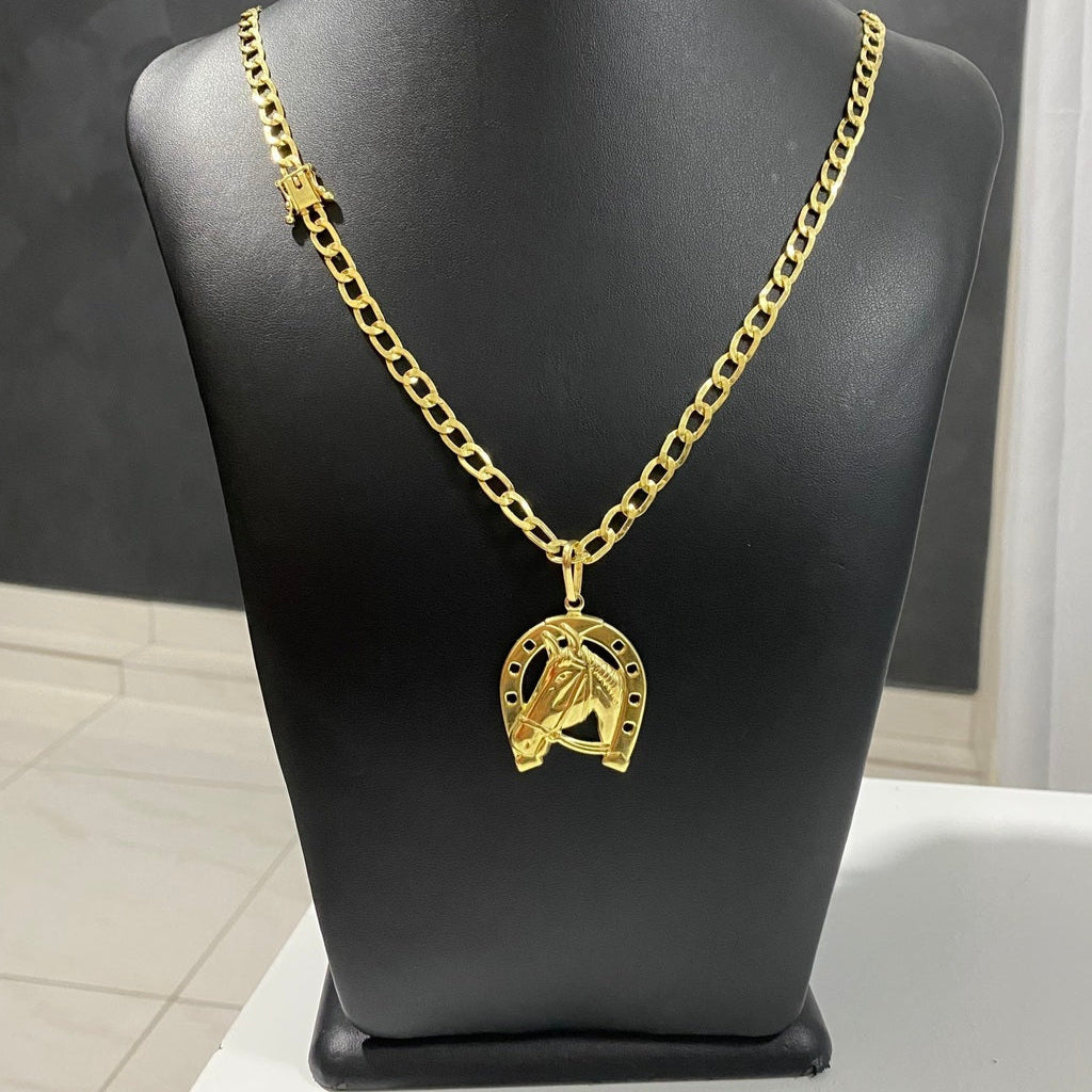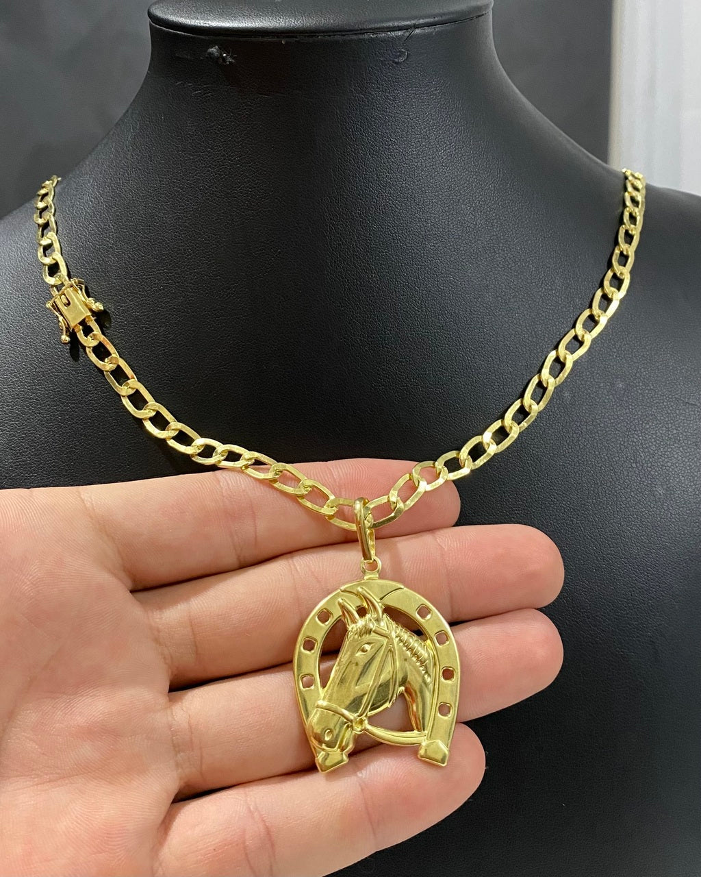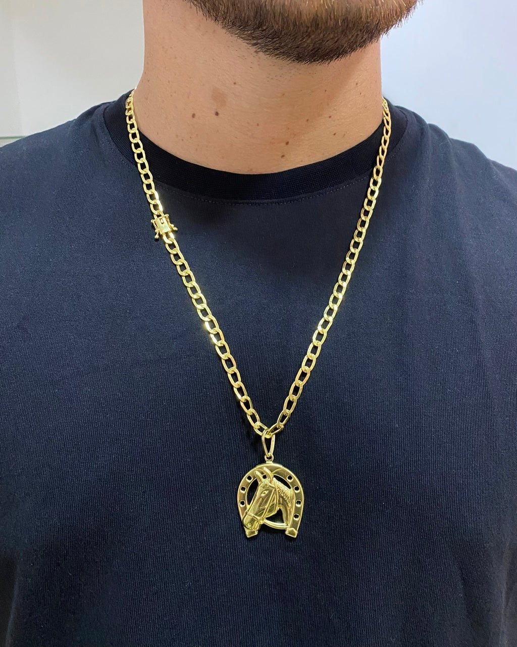 CORRENTE LAMINADA 5MM + PINGENTE FERRADURA DO CAVALO GRANDE