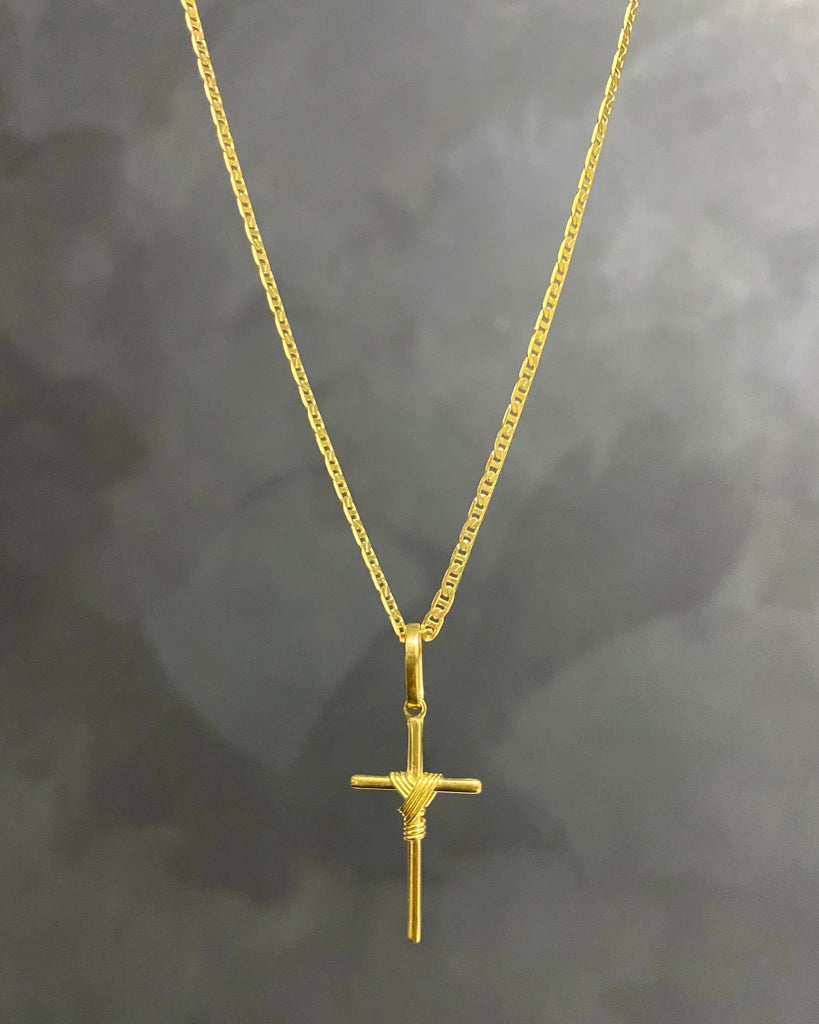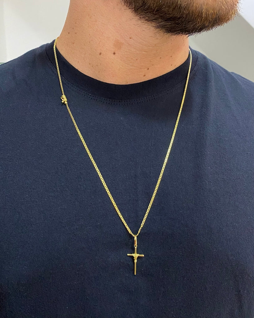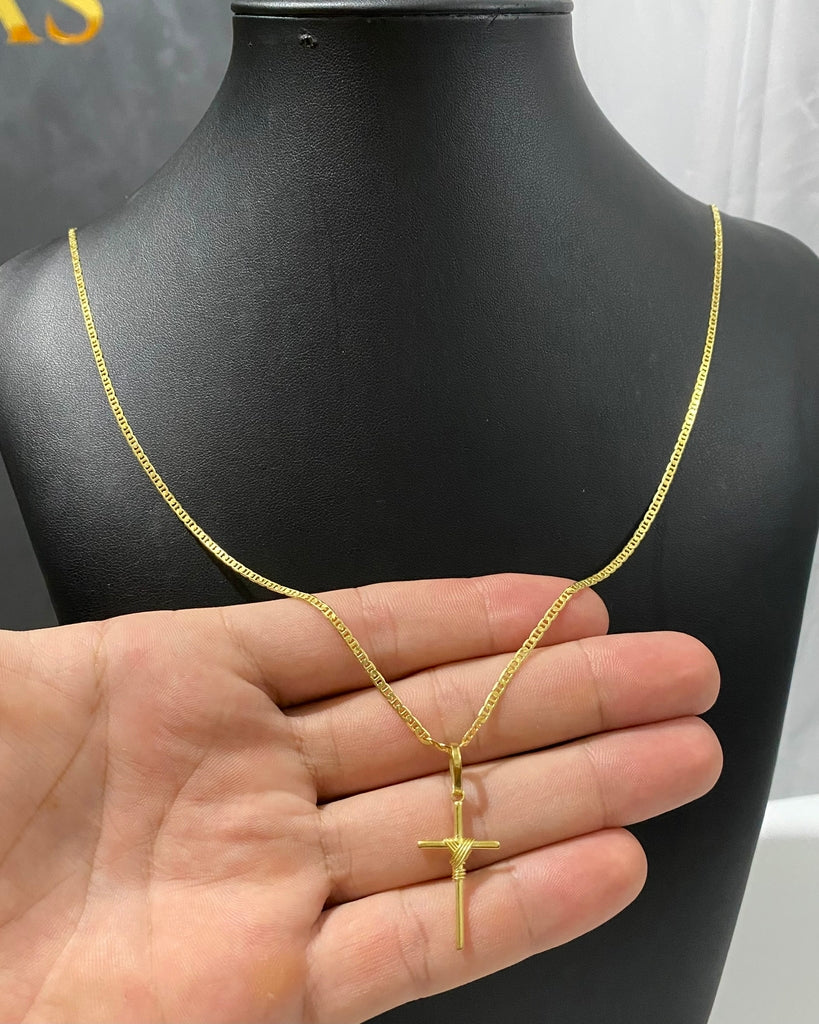 CORRENTE PIASTRINE 2MM + PINGENTE CRUZ AMARRADA PEQUENO