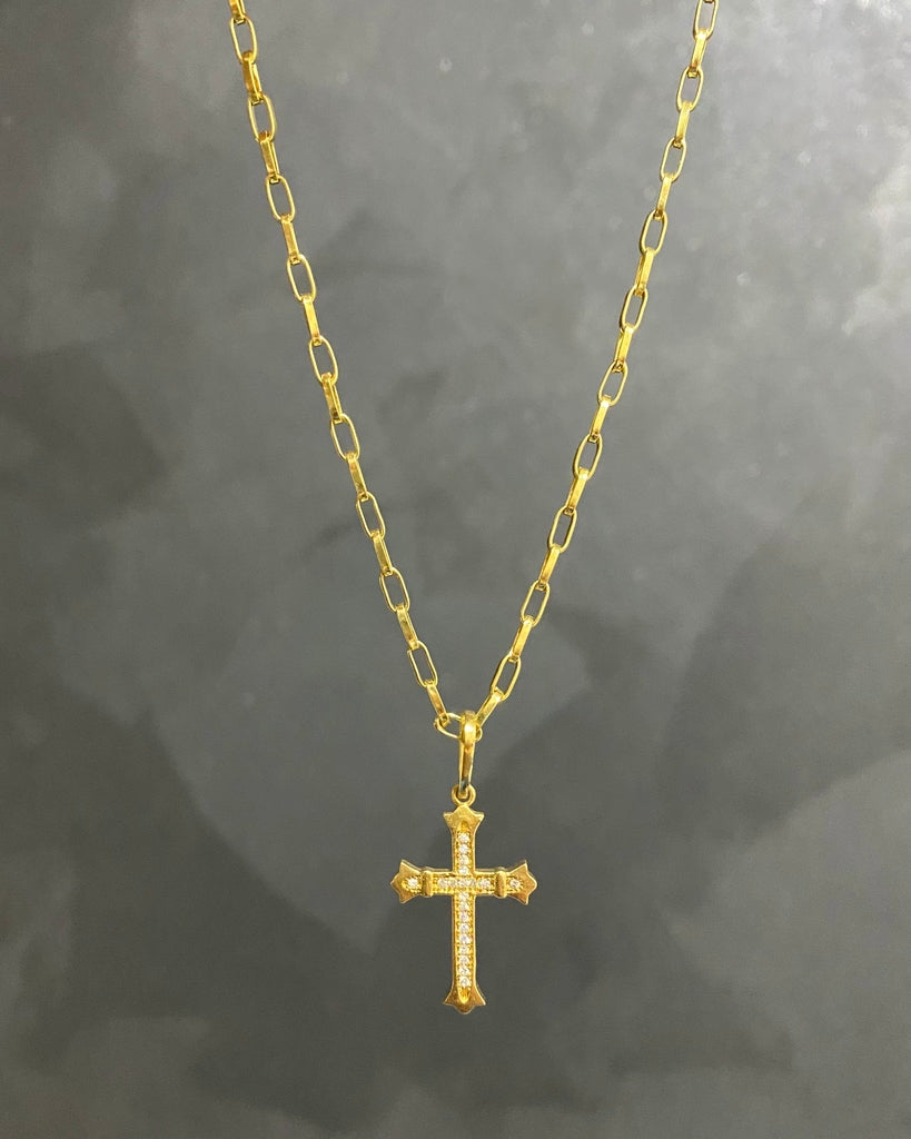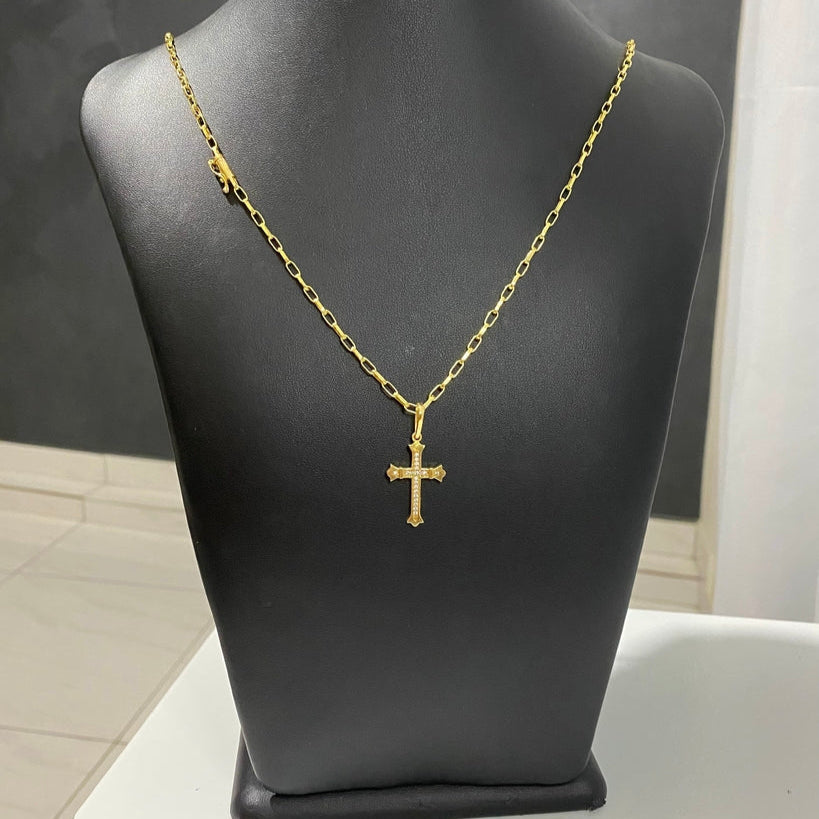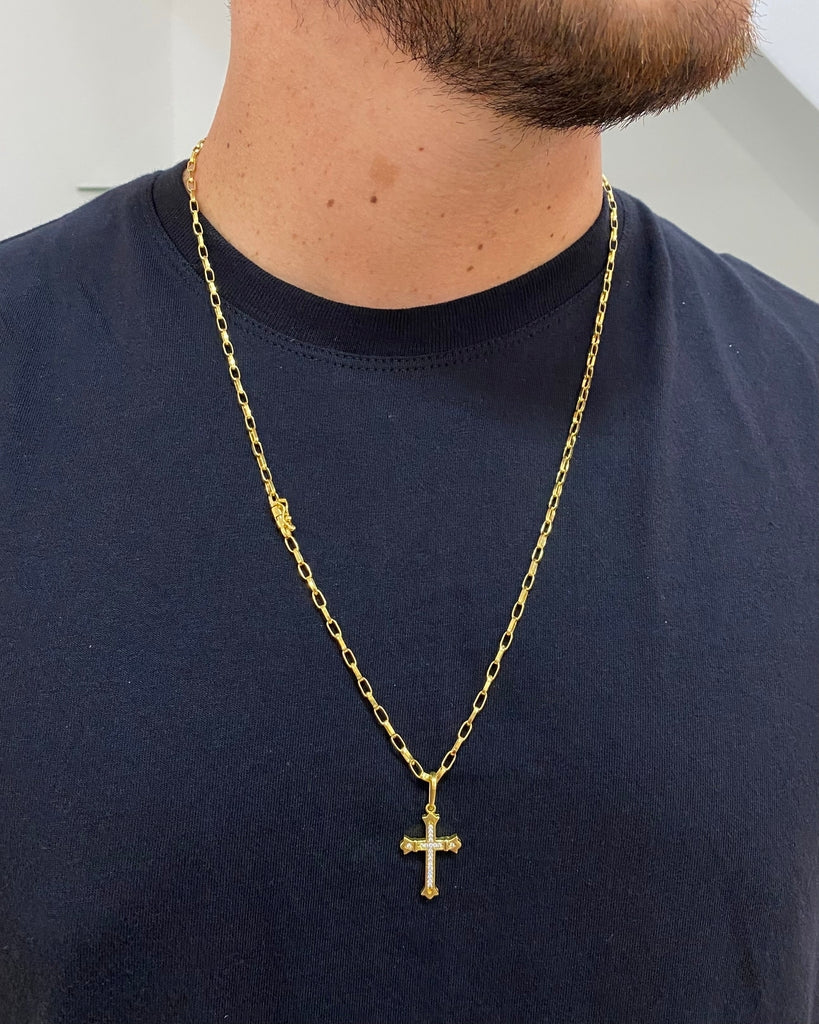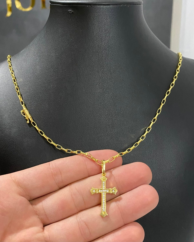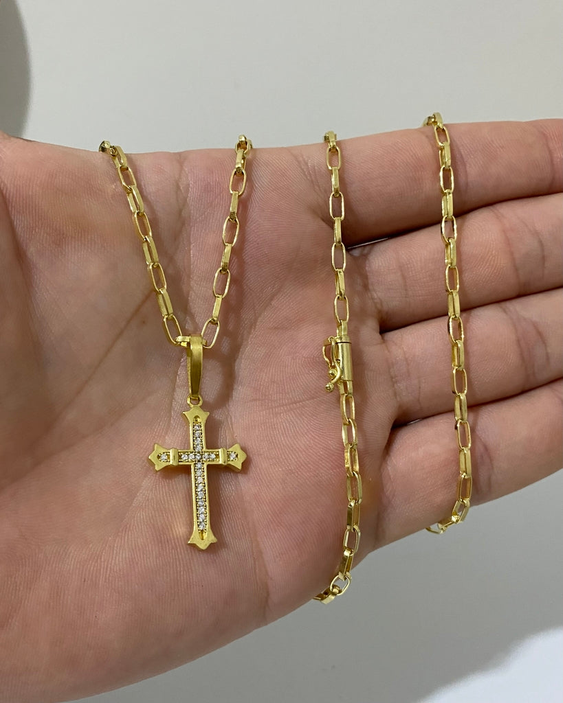 CORRENTE TIJOLINHO 3MM + PINGENTE CRUZ CRAVEJADA MÉDIO