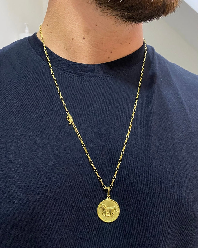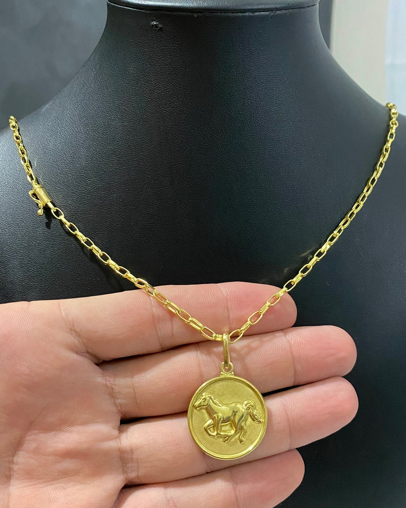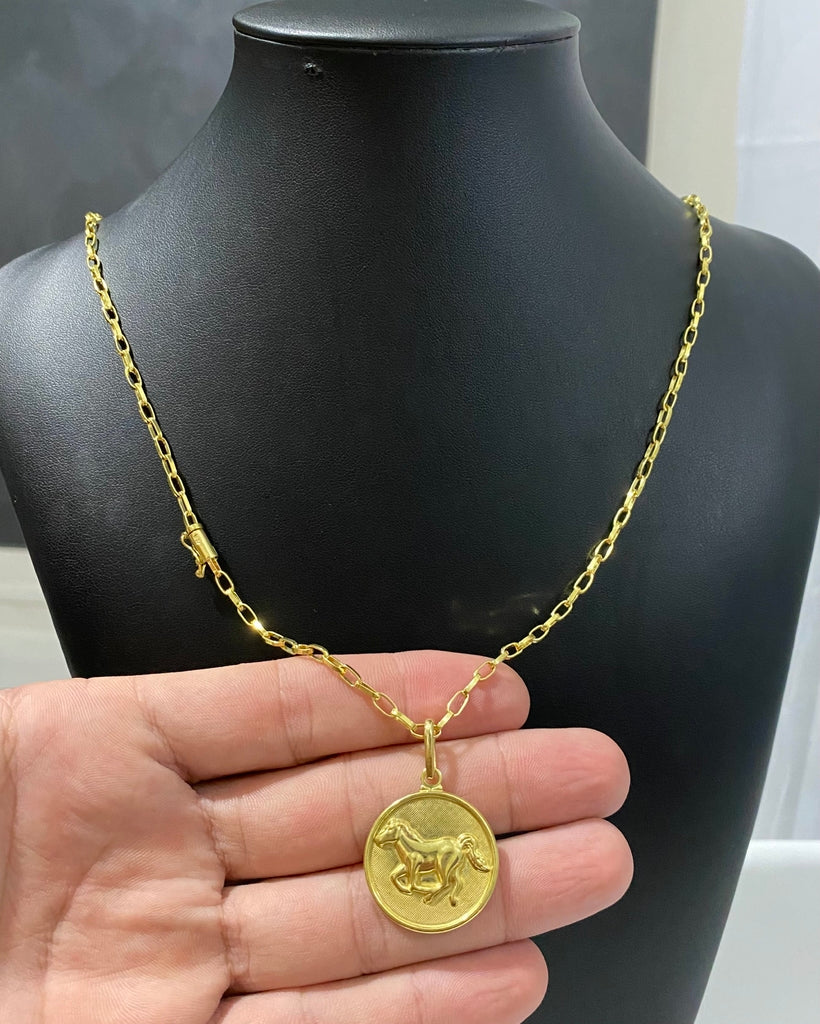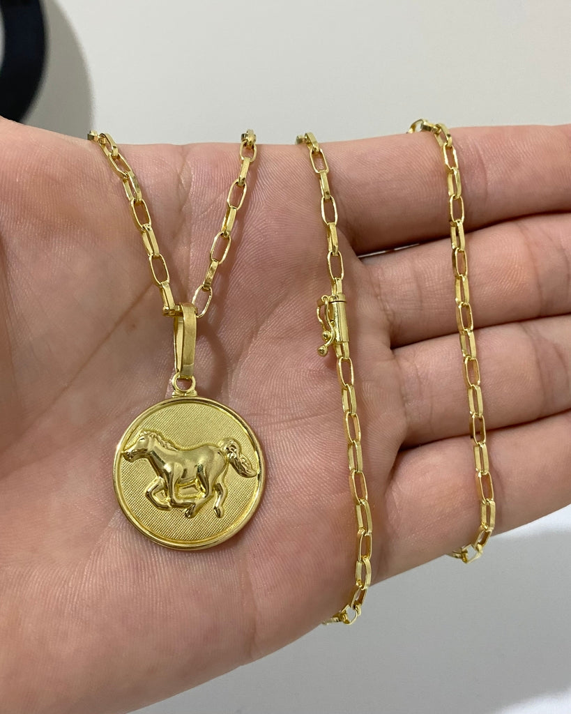 CORRENTE TIJOLINHO 3MM + PINGENTE DO CAVALO
