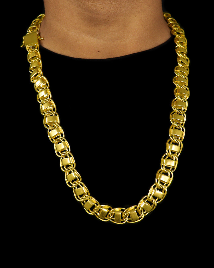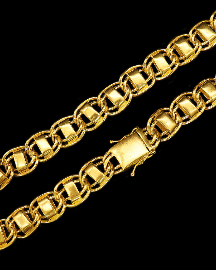 Nossas peças são feitas em moeda antiga, um material muito semelhante ao ouro 18k, que não descasca, não enferruja e não perde a cor.