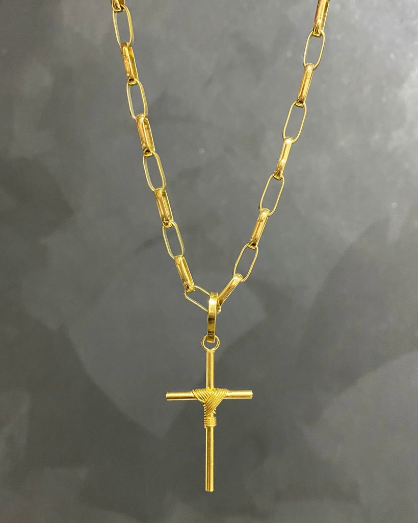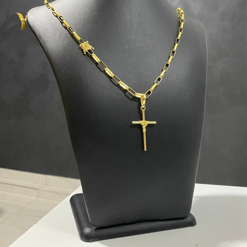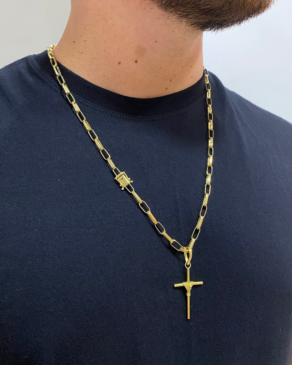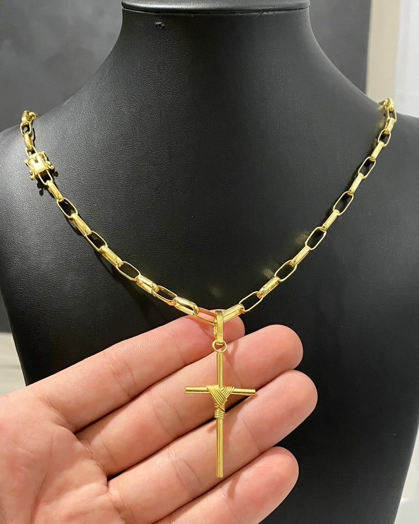 CORRENTE TIJOLINHO 5MM + PINGENTE CRUZ AMARRADA GRANDE