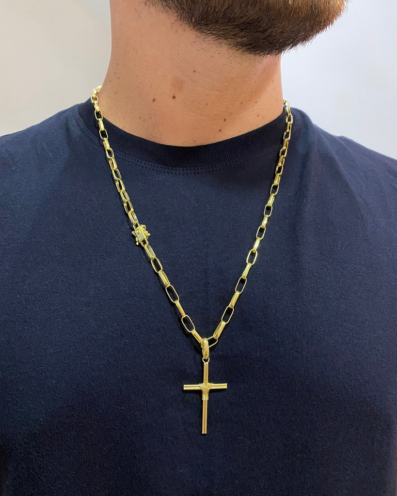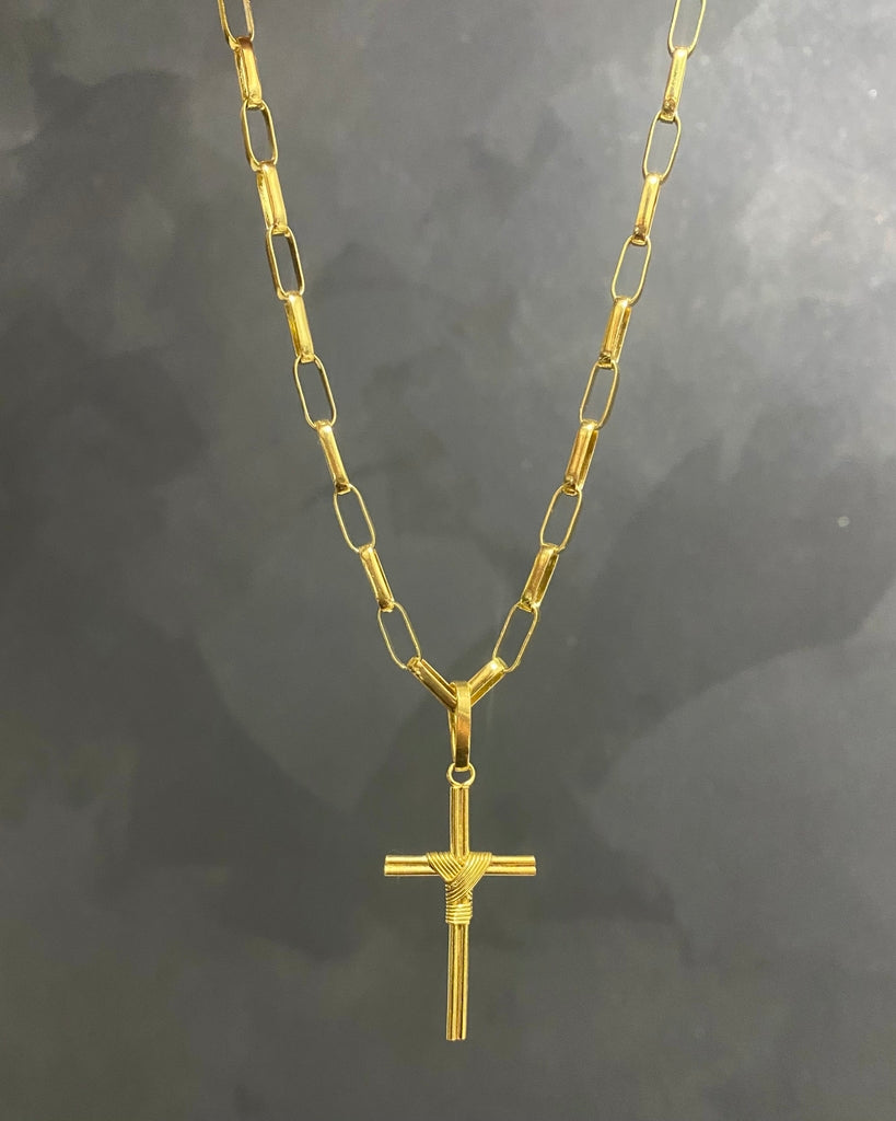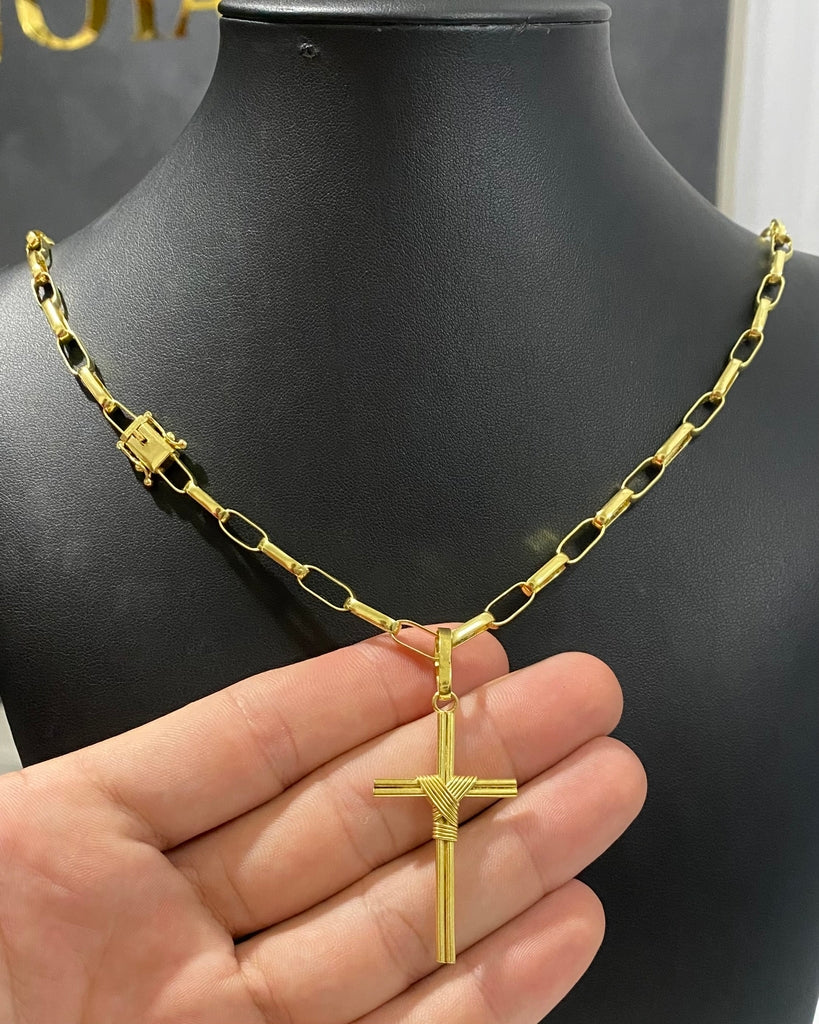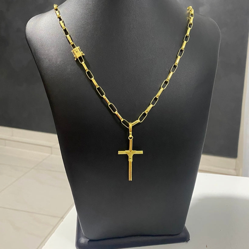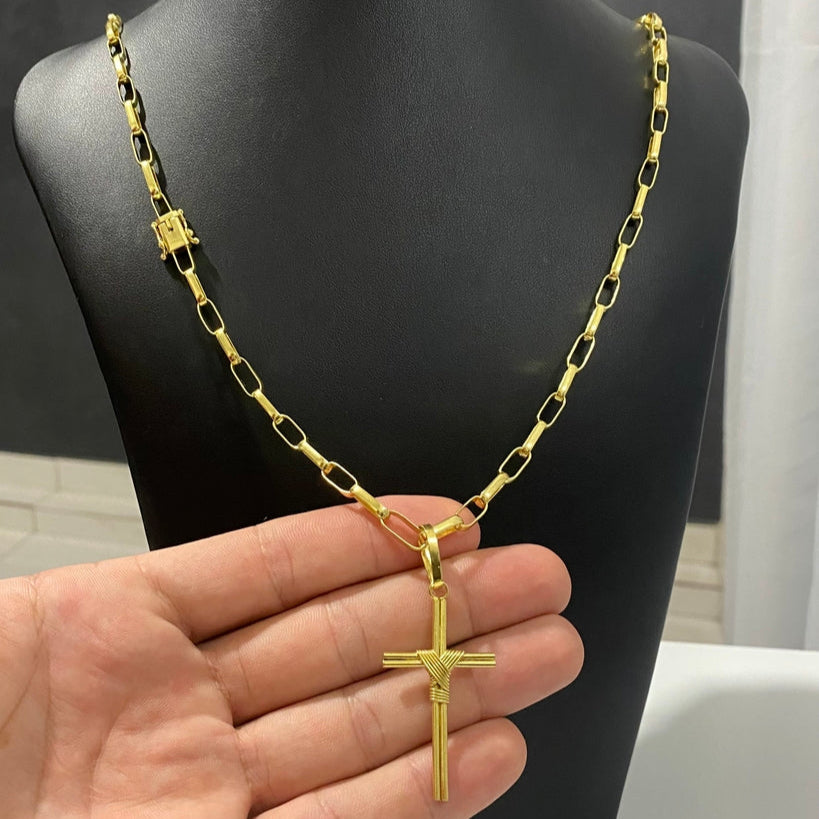CORRENTE TIJOLINHO 5MM + PINGENTE CRUZ DUPLA AMARRADA