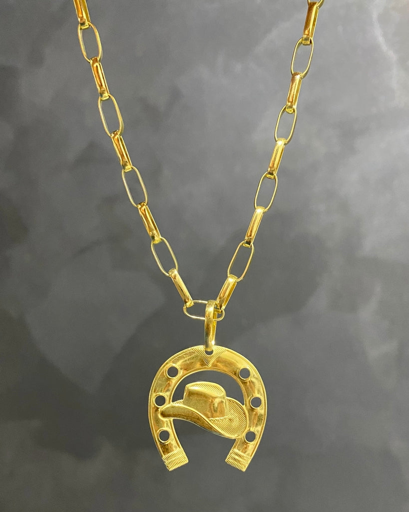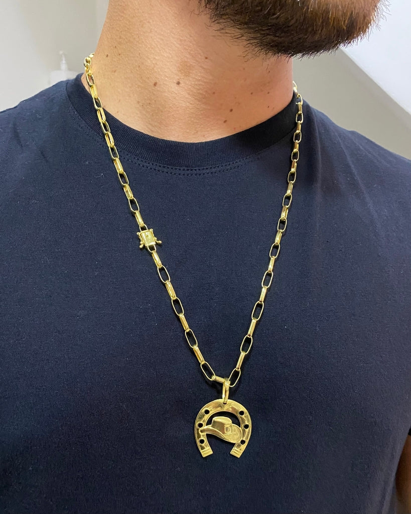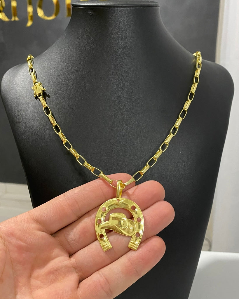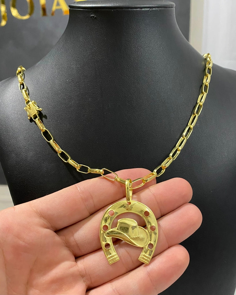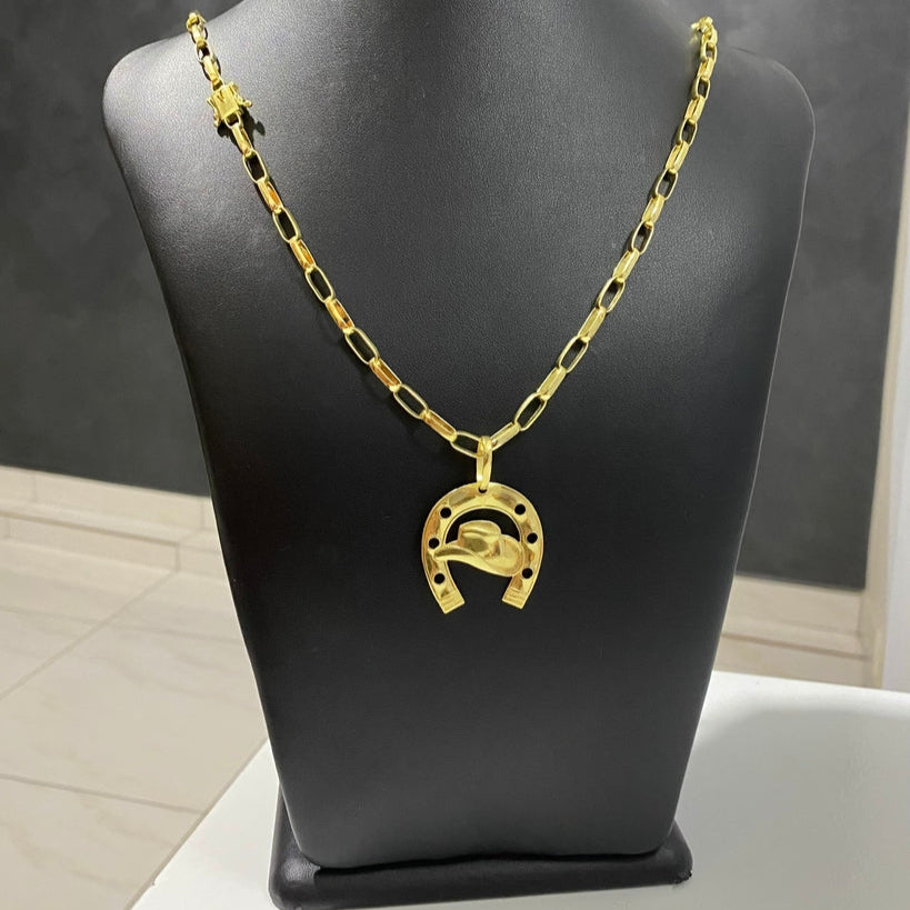 CORRENTE TIJOLINHO 5MM + PINGENTE FERRADURA DO CHAPÉU