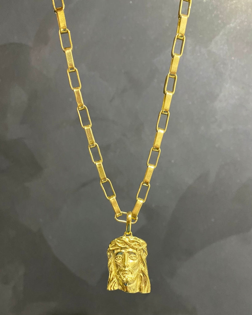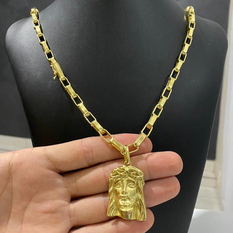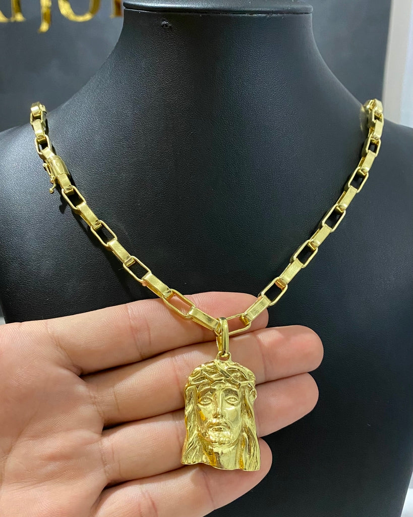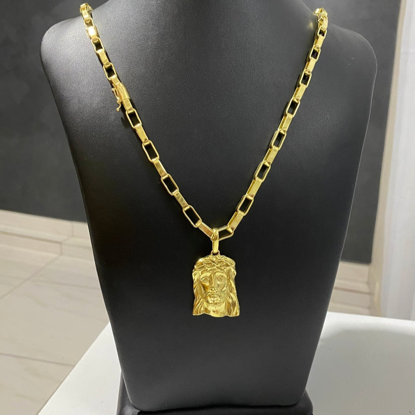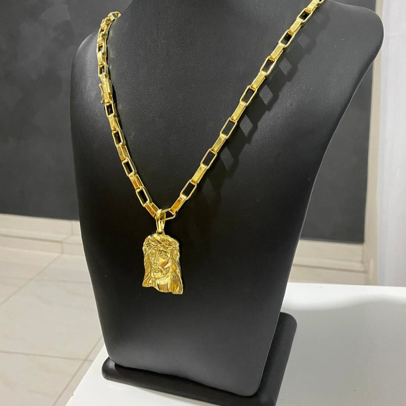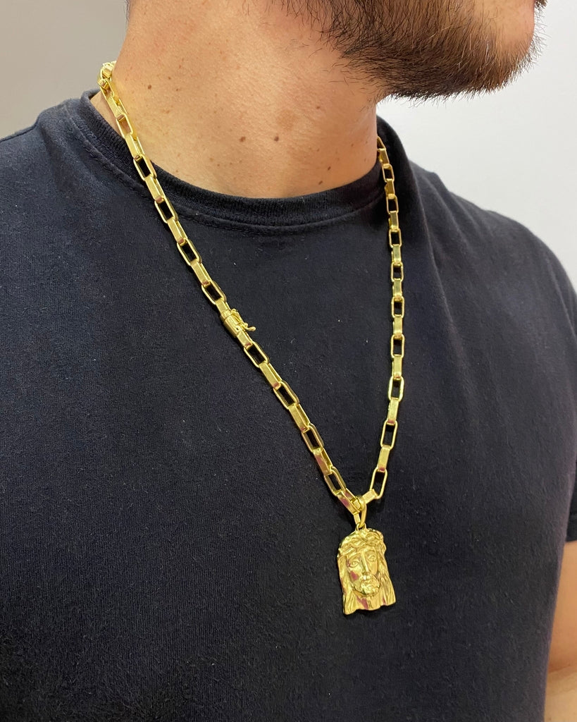 CORRENTE TIJOLINHO 6MM + PINGENTE ROSTO DE CRISTO GRANDE