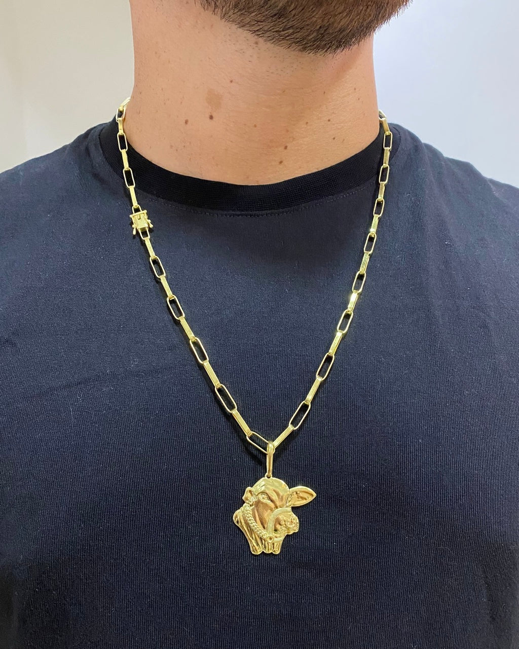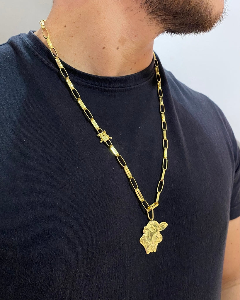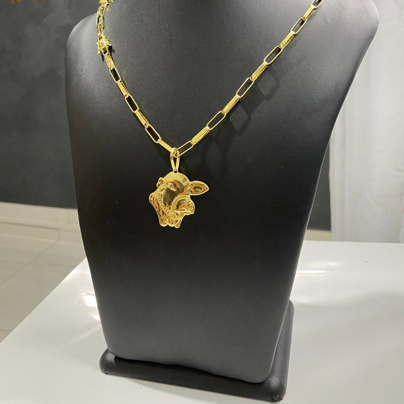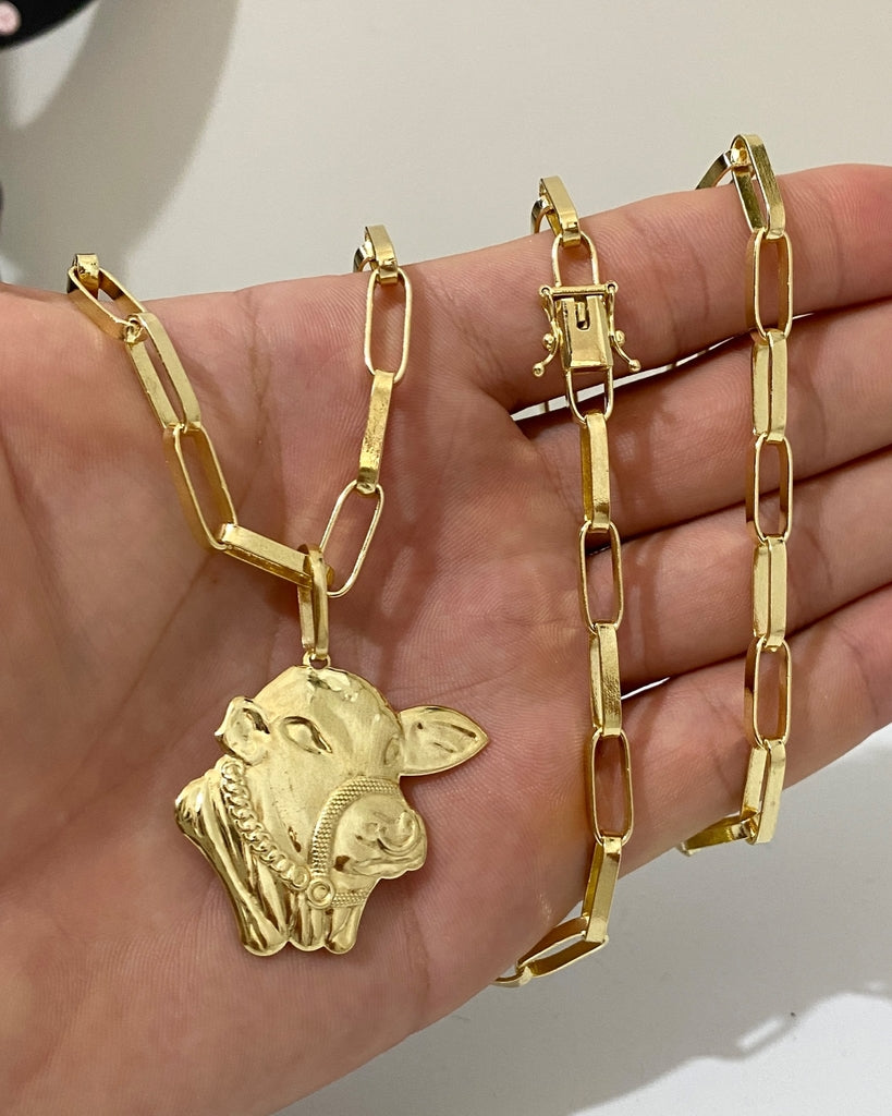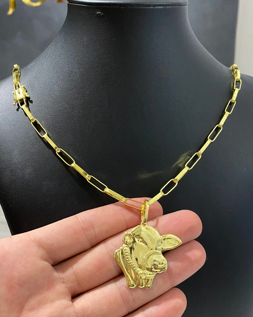 CORRENTE TIJOLINHO LONG 5MM + PINGENTE FACE DO BOI