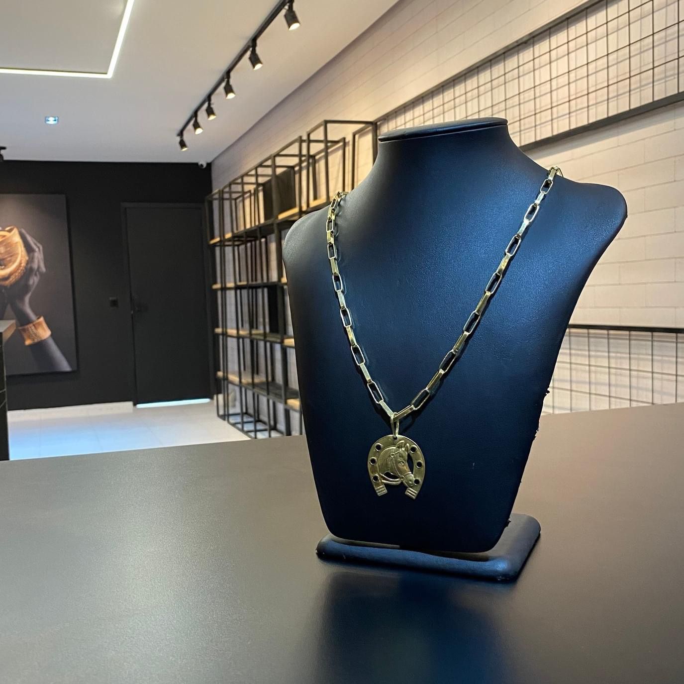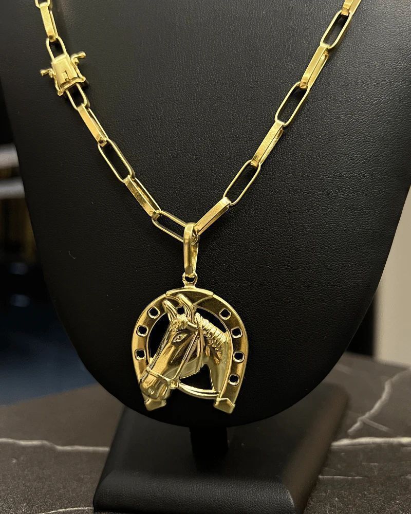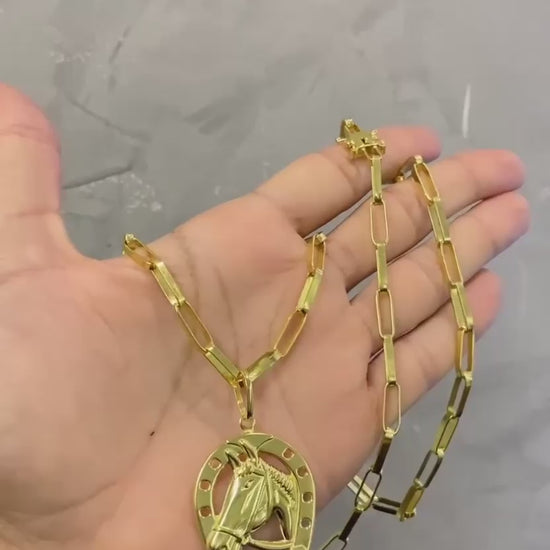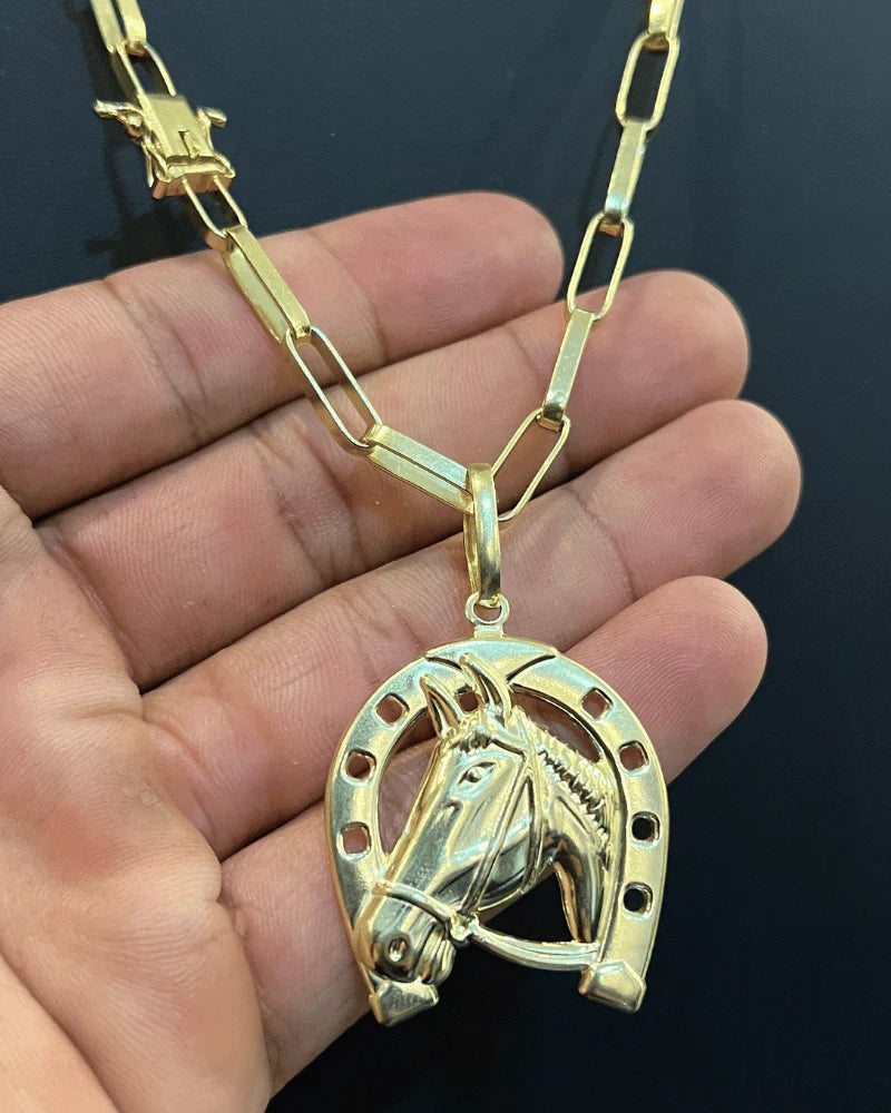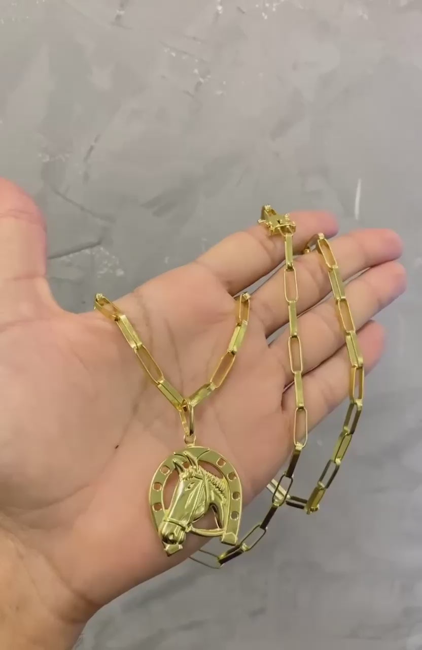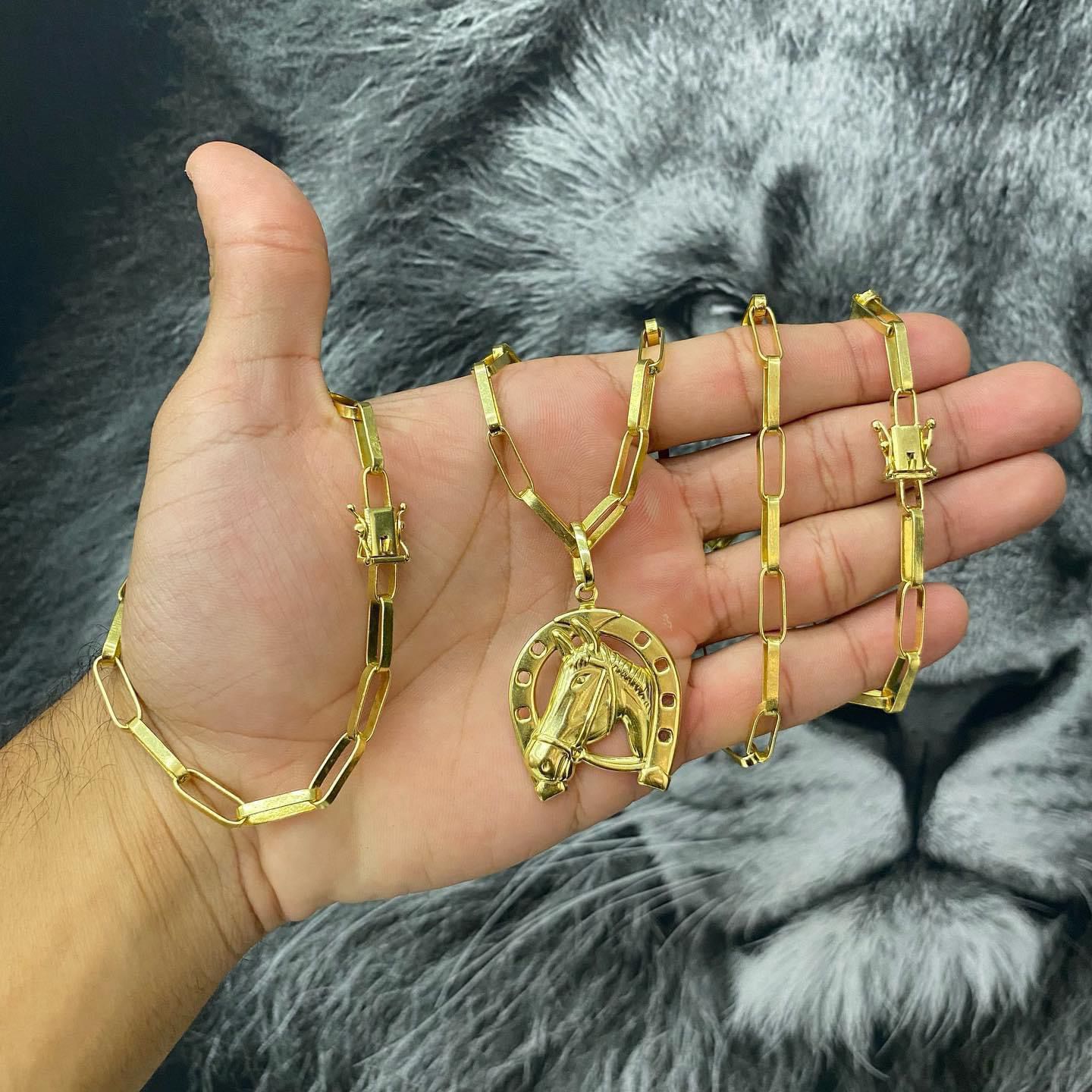 CORRENTE TIJOLINHO LONG 5MM + PINGENTE FERRADURA