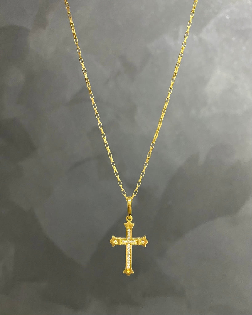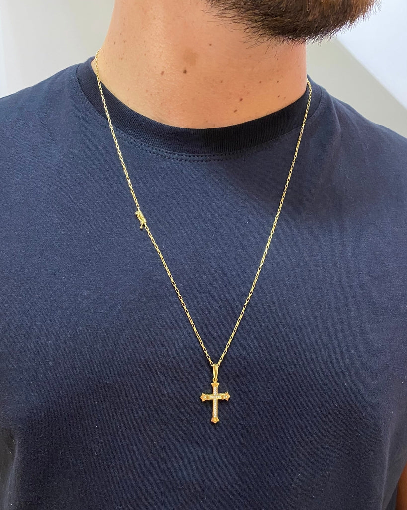 CORRENTE VENEZIANA 2MM + PINGENTE CRUZ CRAVEJADA MÉDIO