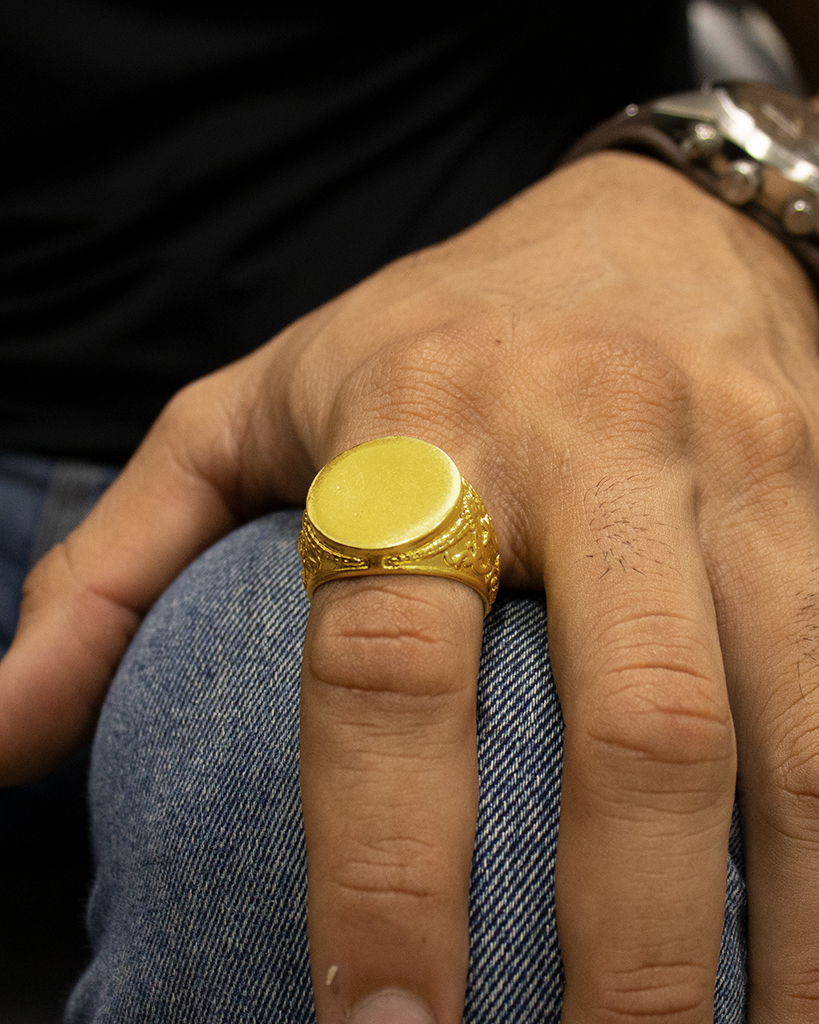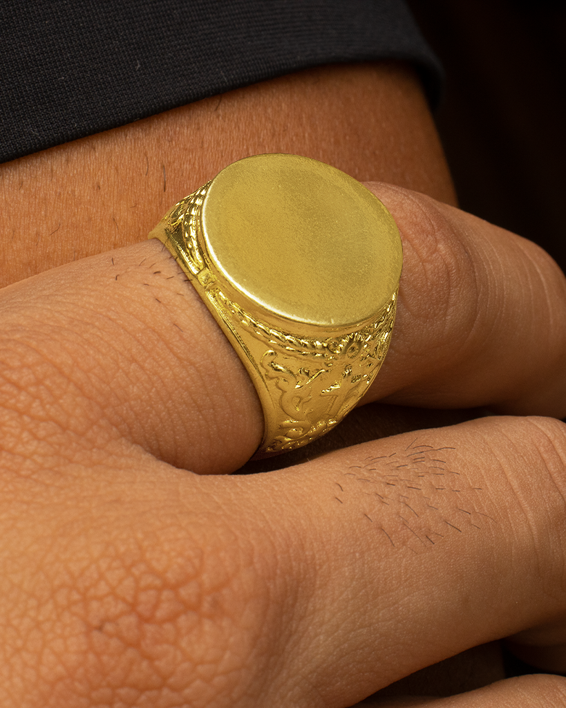 Nossas peças são feitas em moeda antiga, um material muito semelhante ao ouro 18k, que não descasca, não enferruja e não perde a cor.