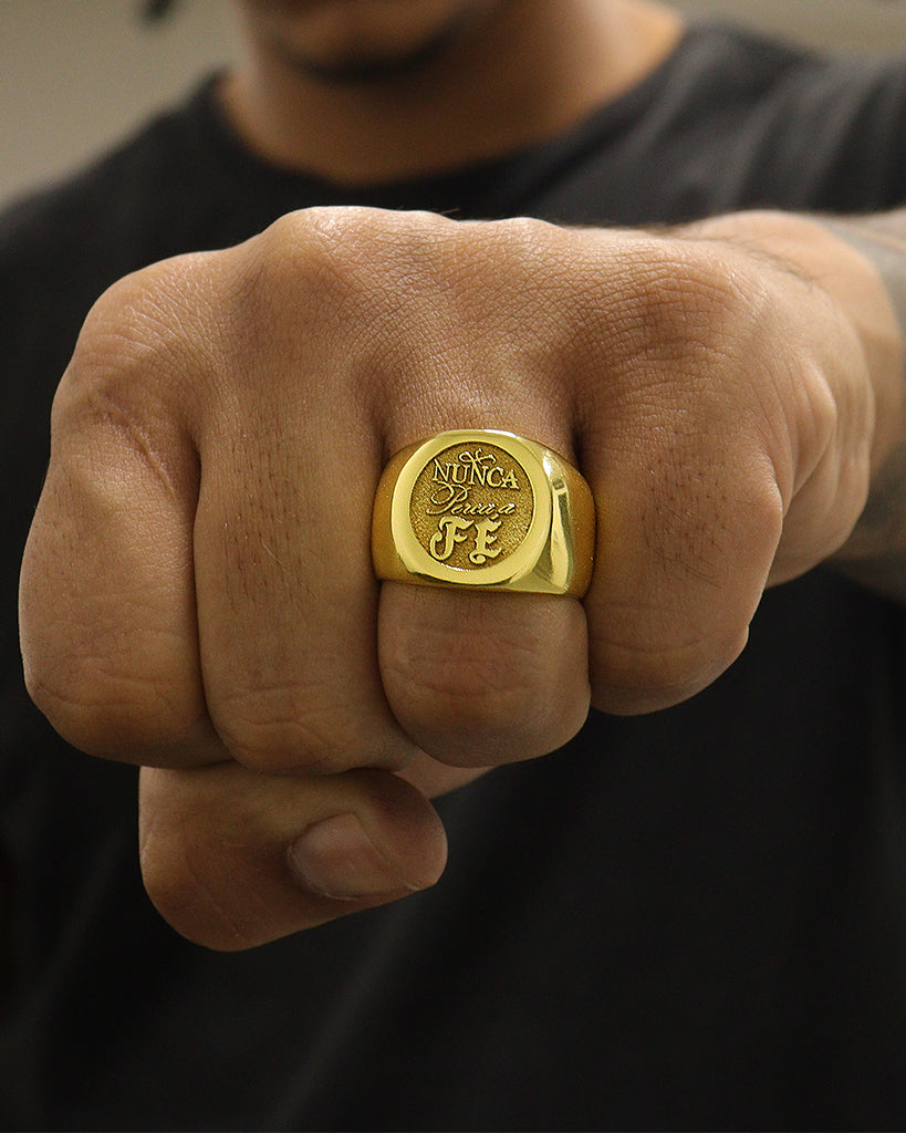 Nossas peças são feitas em moeda antiga, um material muito semelhante ao ouro 18k, que não descasca, não enferruja e não perde a cor.