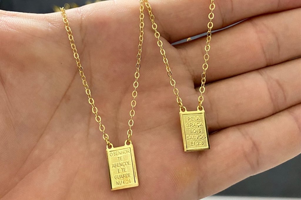 Nossas peças são feitas em moeda antiga, um material muito semelhante ao ouro 18k, que não descasca, não enferruja e não perde a cor.