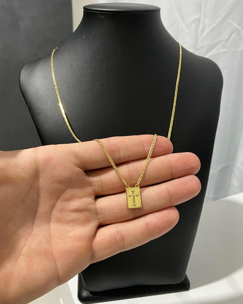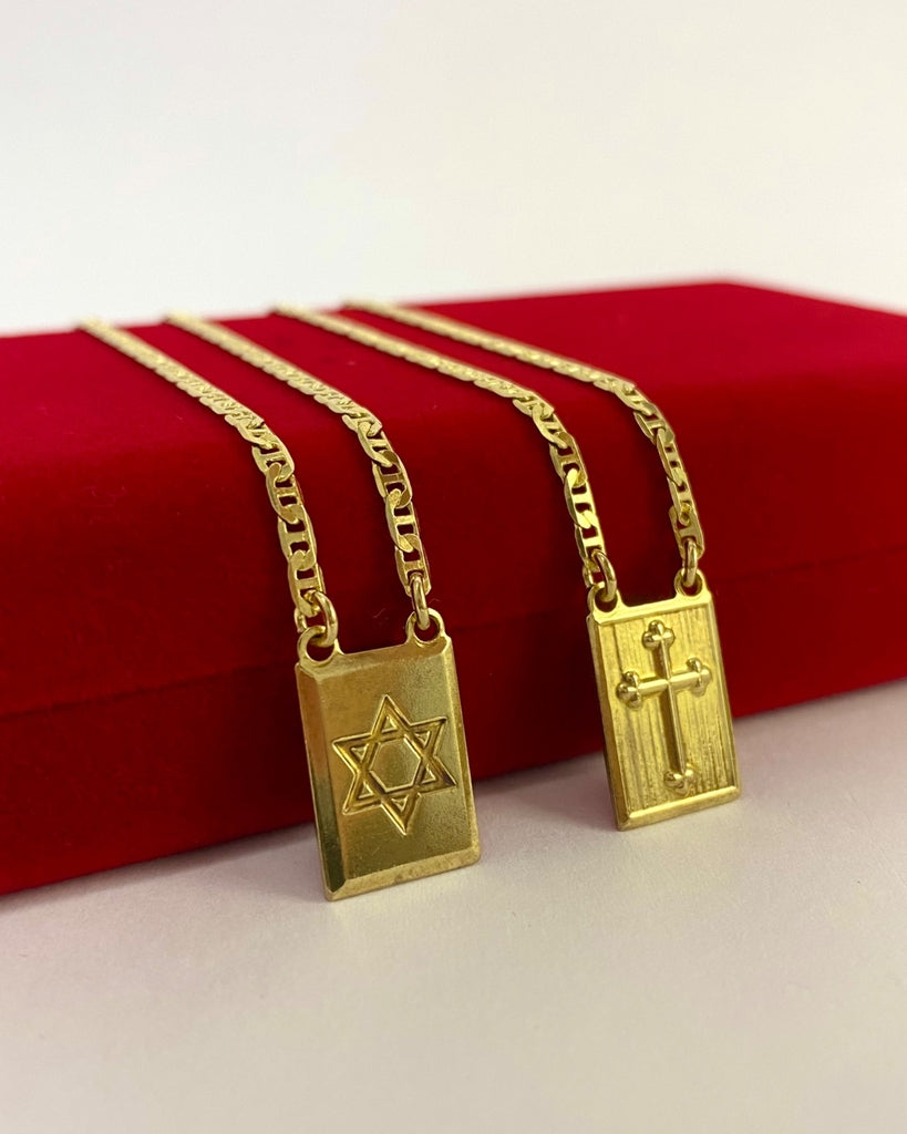 ESCAPULÁRIO PIASTRINE CRUZ/ESTRELA DE DAVI - 2mm - 70cm
