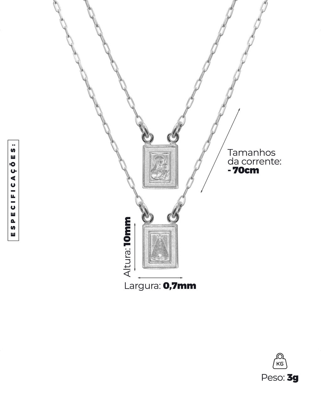 ESCAPULÁRIO PRATA 925: NOSSA SENHORA DO CARMO E NOSSA SENHORA APARECIDA COM ORAÇÃO