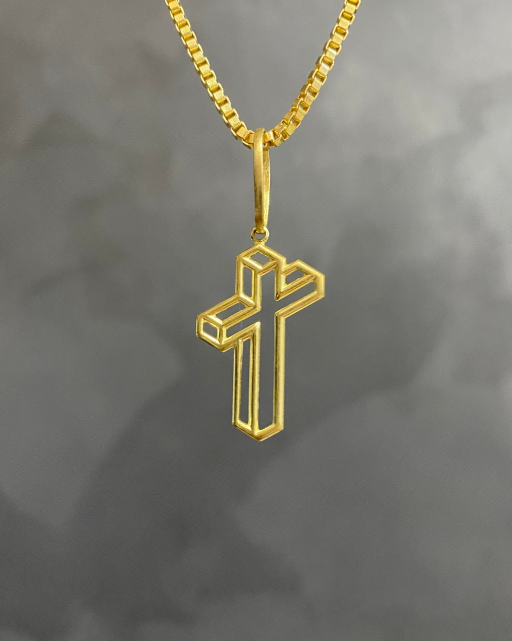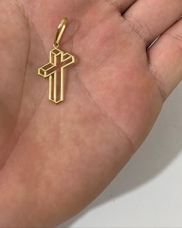 PINGENTE CRUZ PEQUENA VAZADA 3D - 2,5x1,5cm